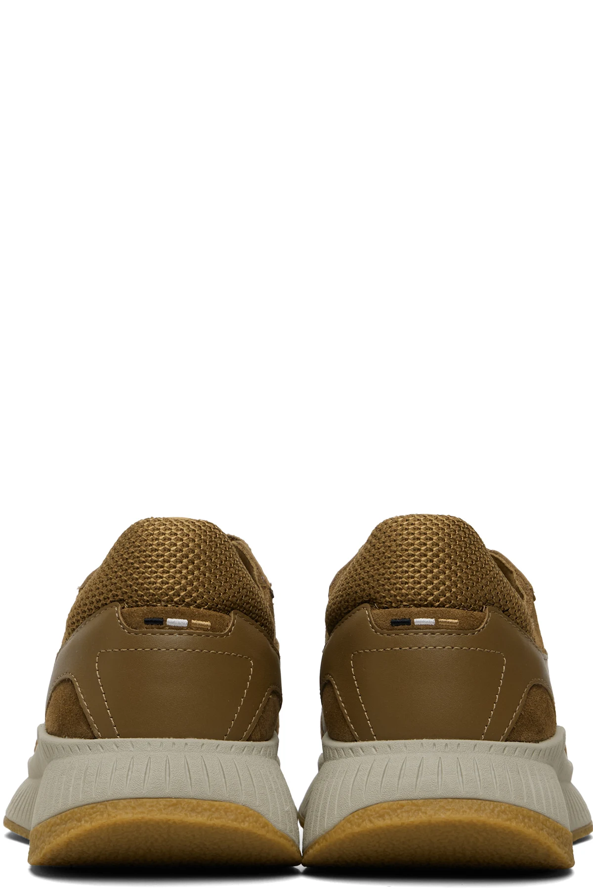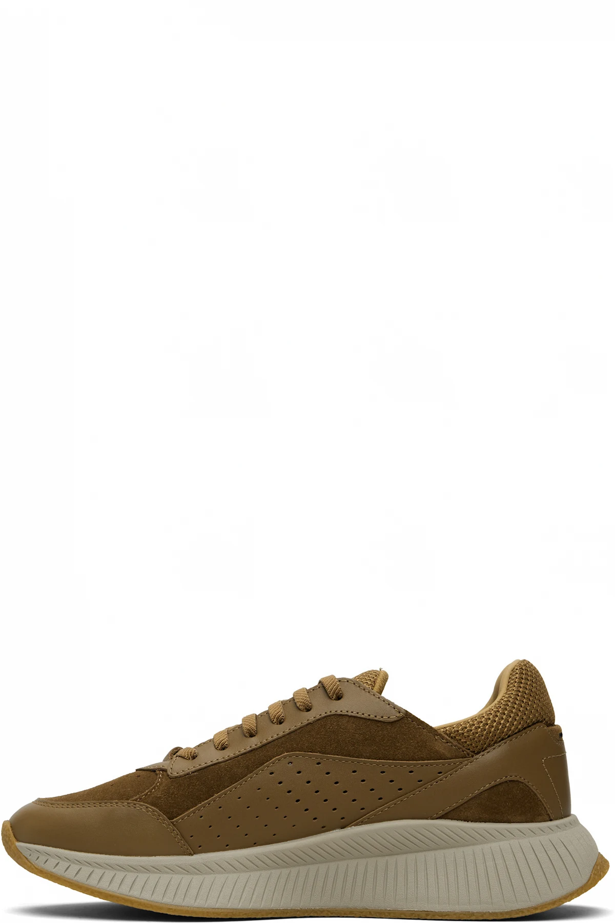 Low-top mesh, suede, and buffed leather sneakers.