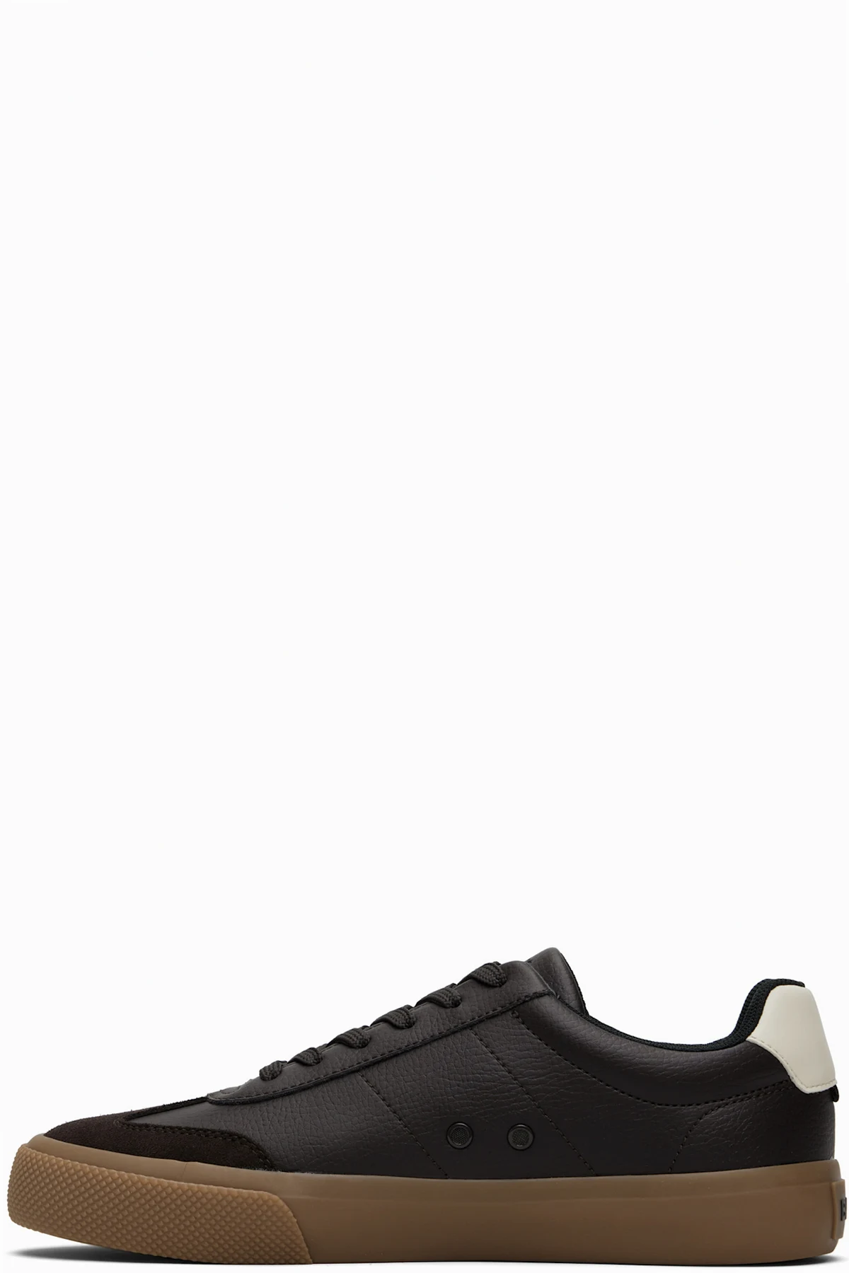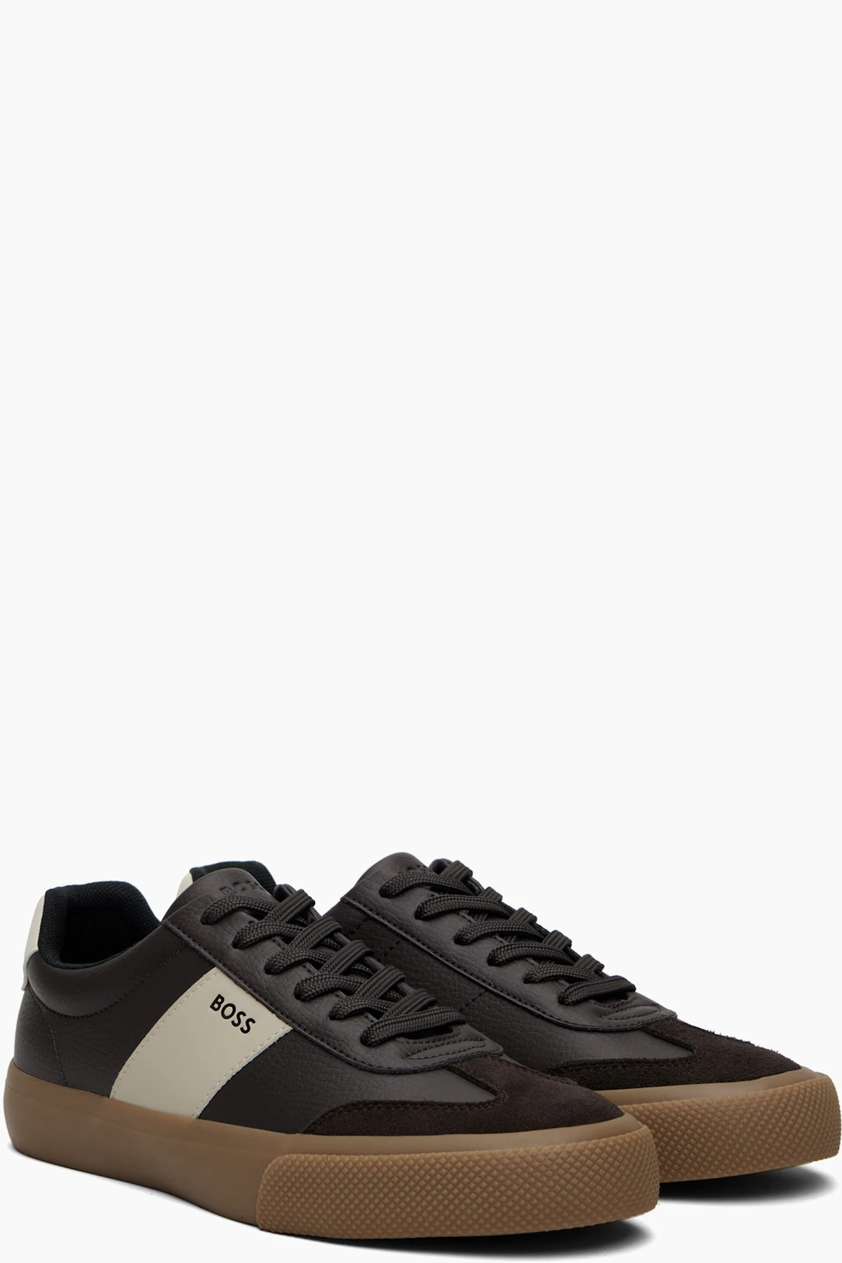 Low-top grained leather, suede, and buffed leather sneakers.