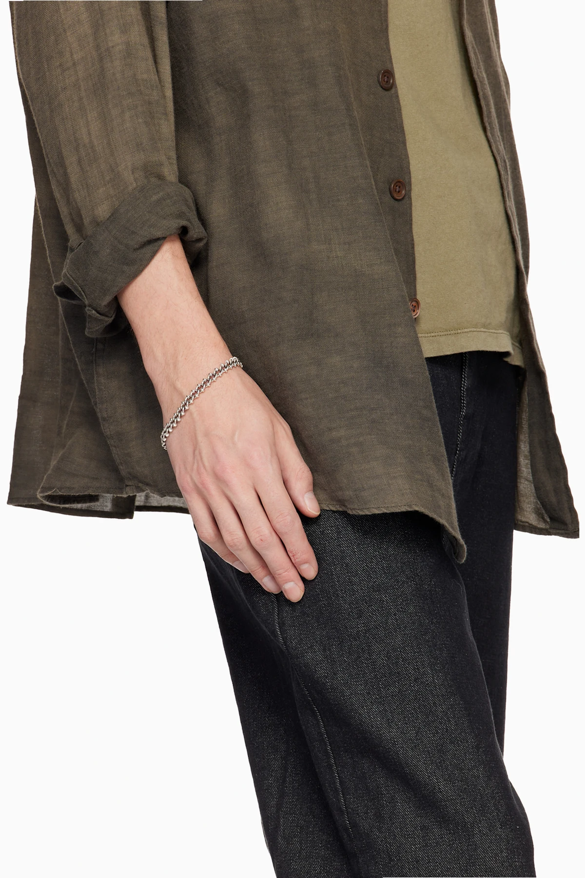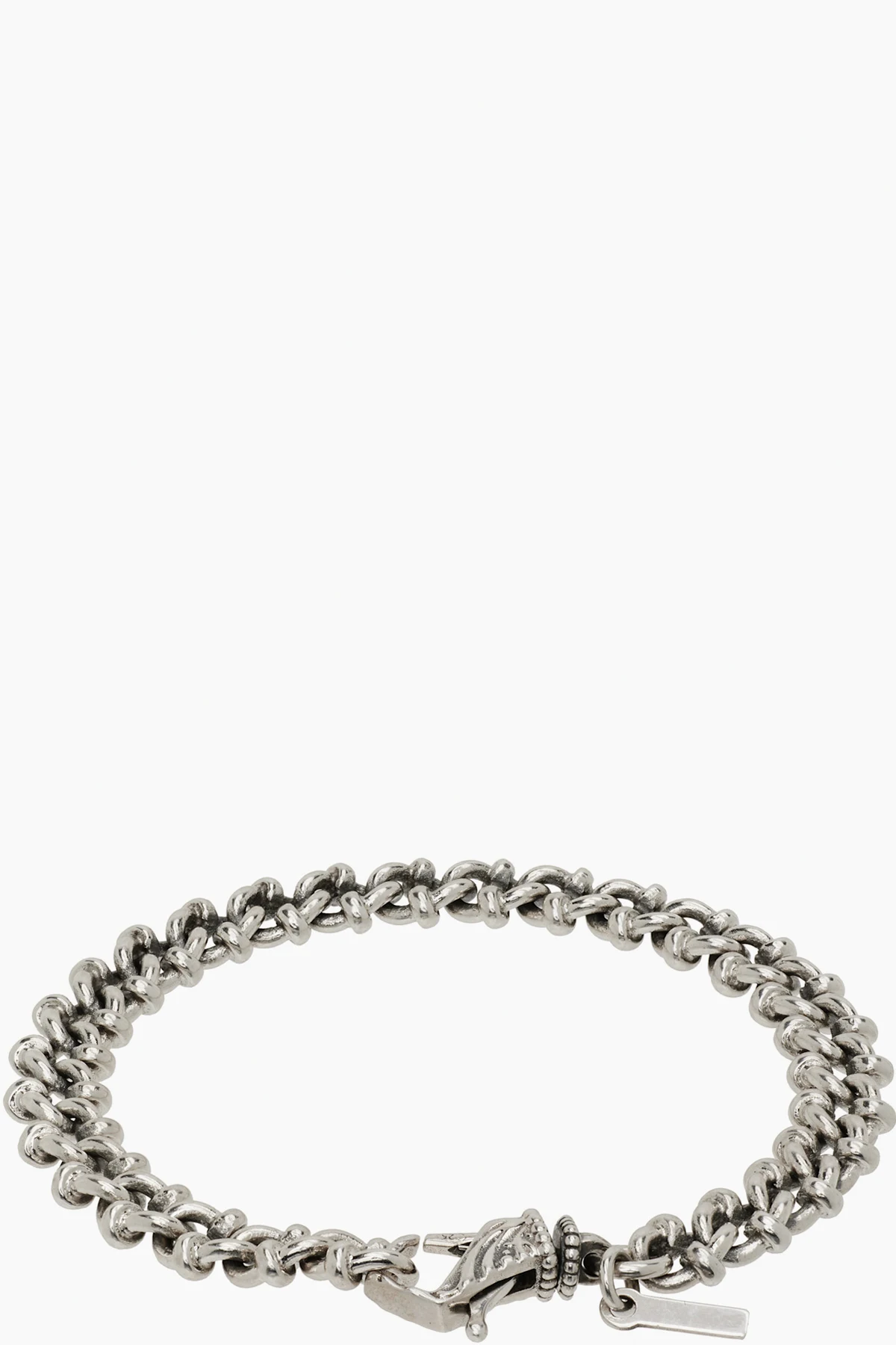Modified curb chain bracelet in sterling silver. Logo plaque at lobster-clasp fastening.
