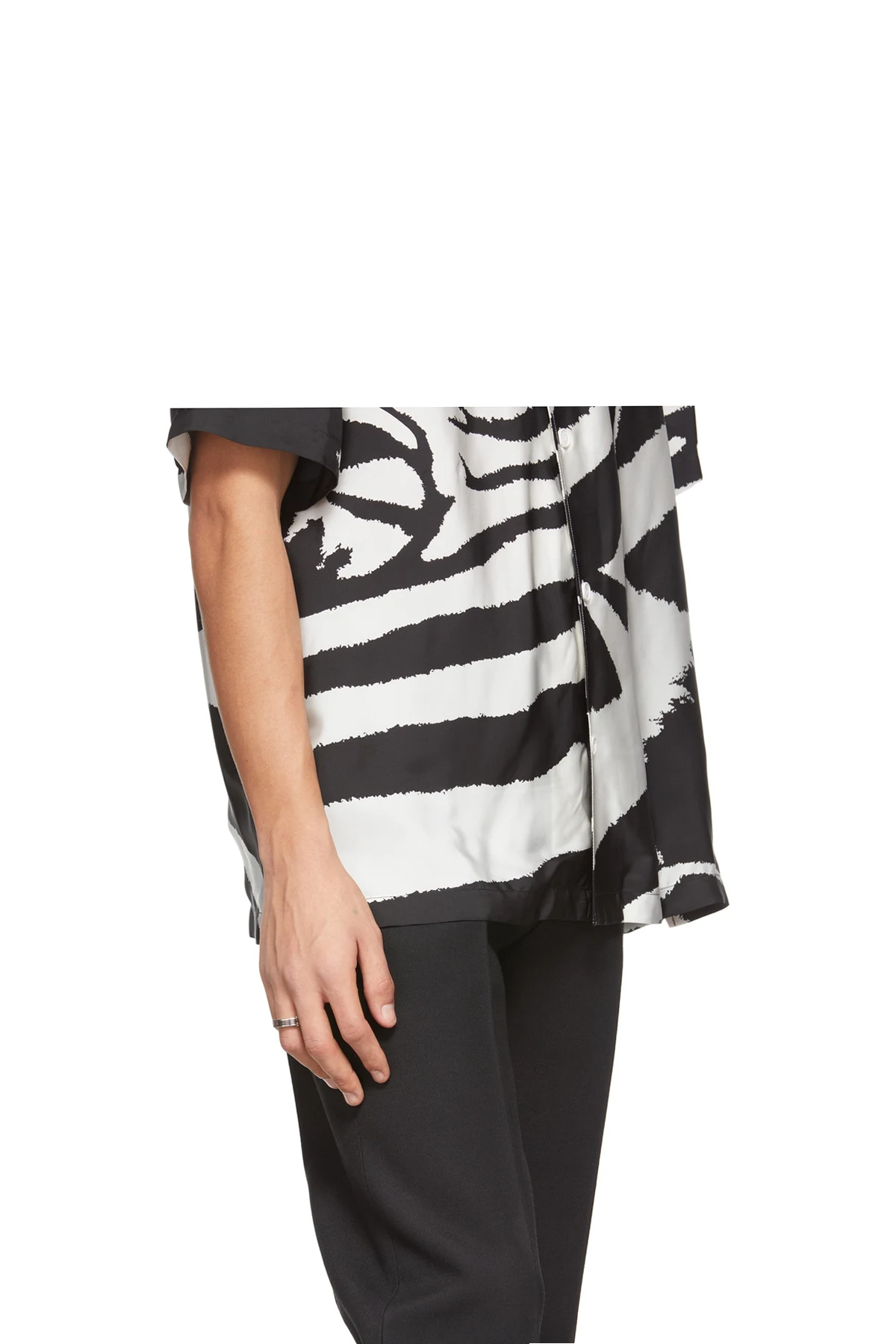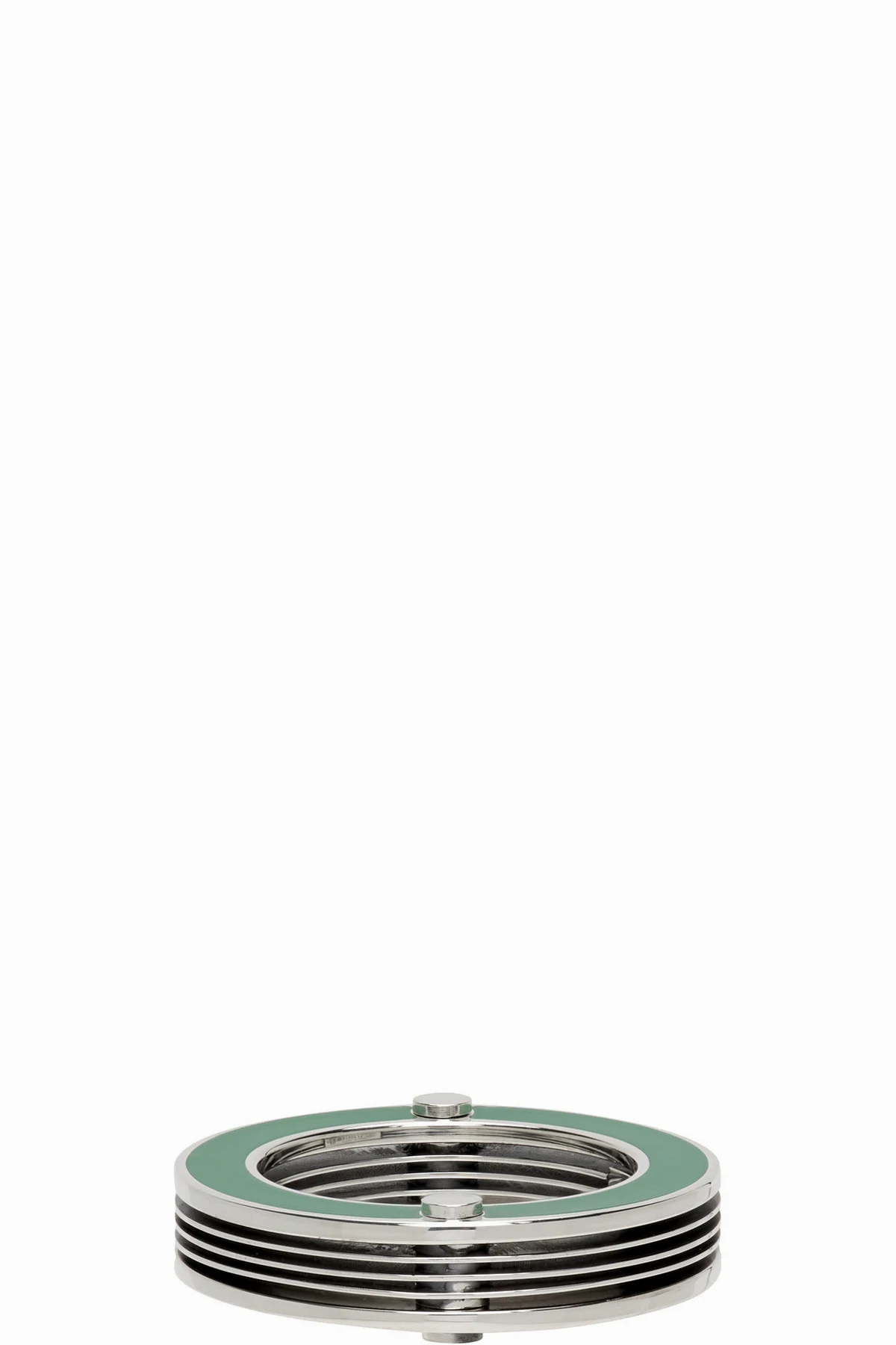 Band ring in sterling silver featuring enamel detailing in green.
