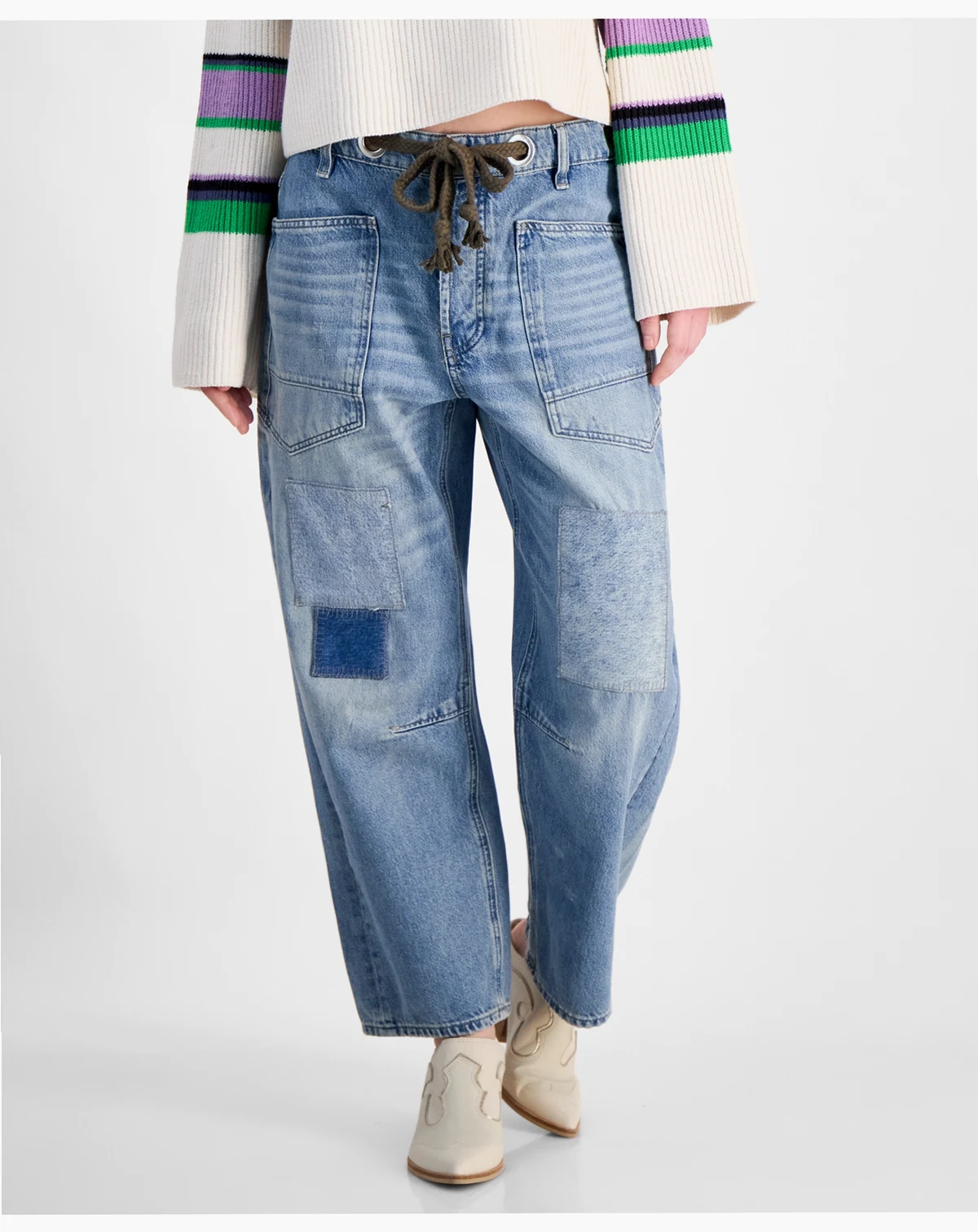 drawstring straight-leg jeans