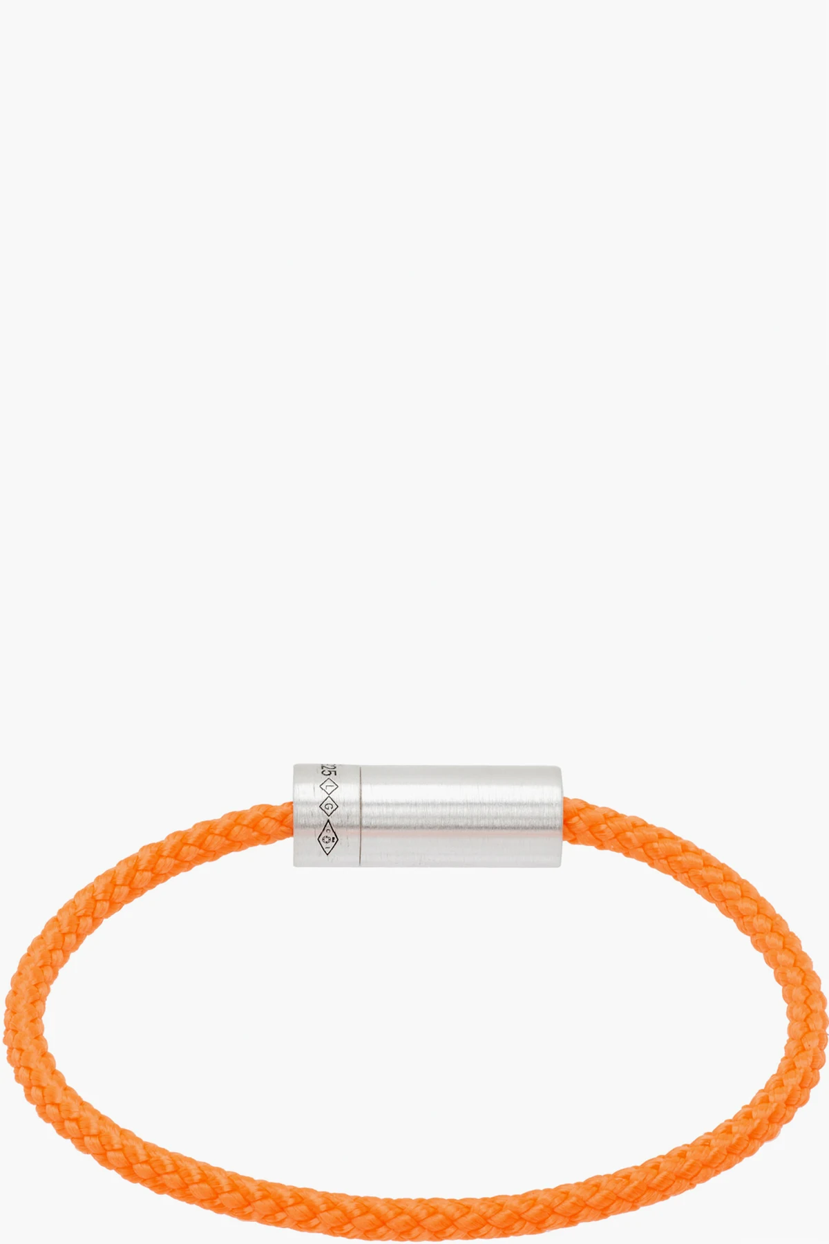 Braided cord bracelet in orange. Logo-engraved brushed recycled sterling silver screw fastening.