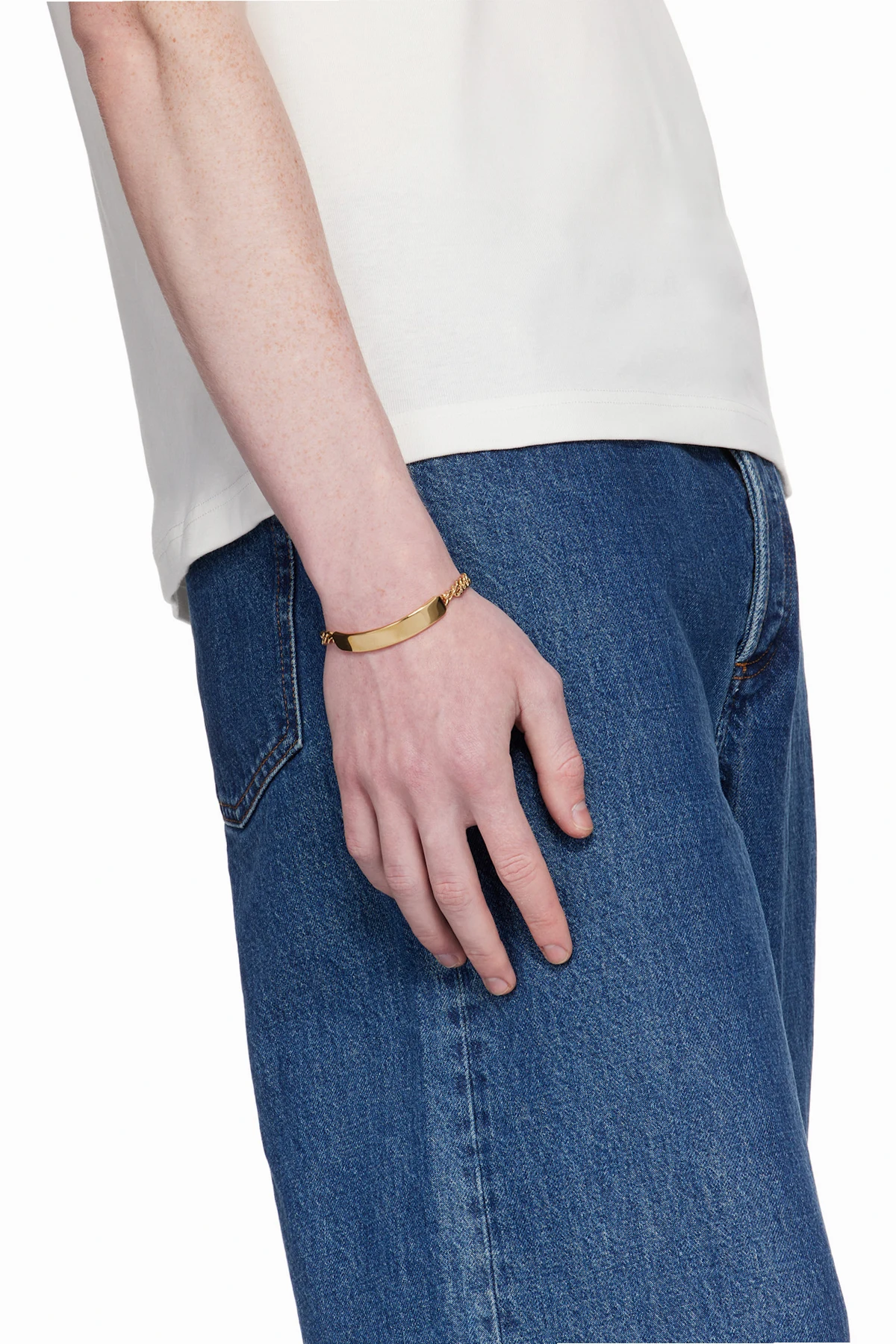 Curb chain bracelet in gold-tone brass.
