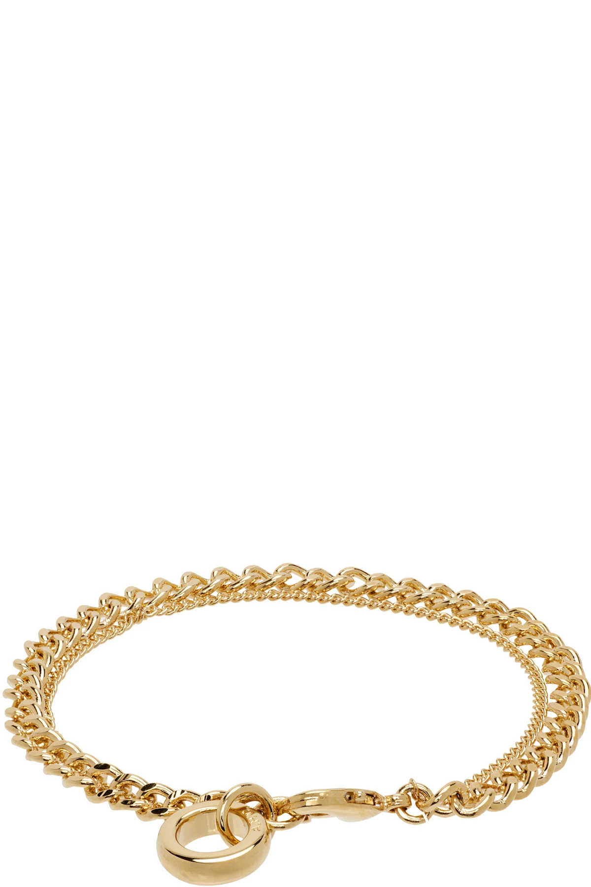 Tiered curb chain bracelet in gold-tone brass. Logo charm at lobster-clasp fastening.