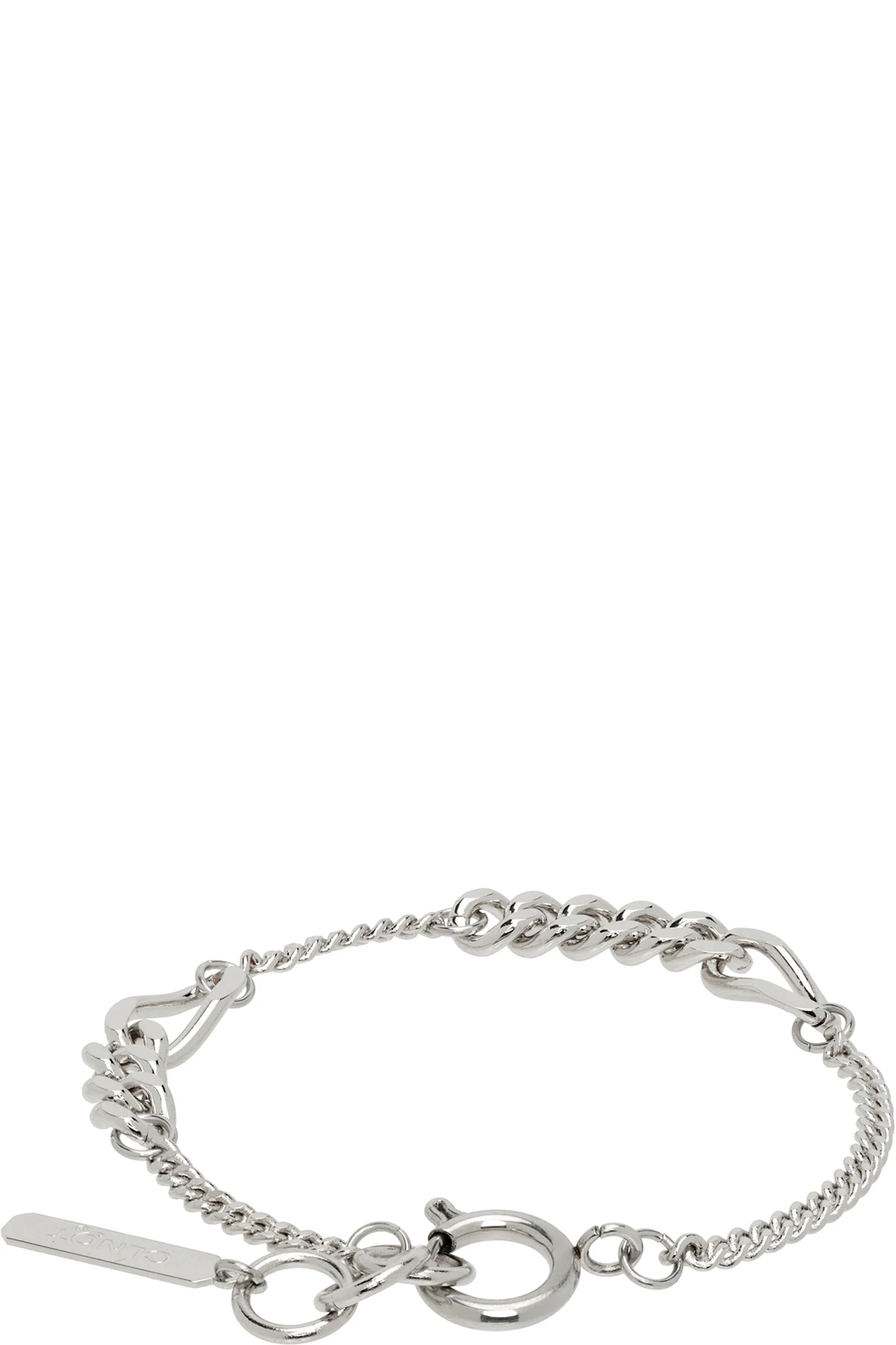 Handcrafted curb and figaro chain bracelet in palladium-plated brass.