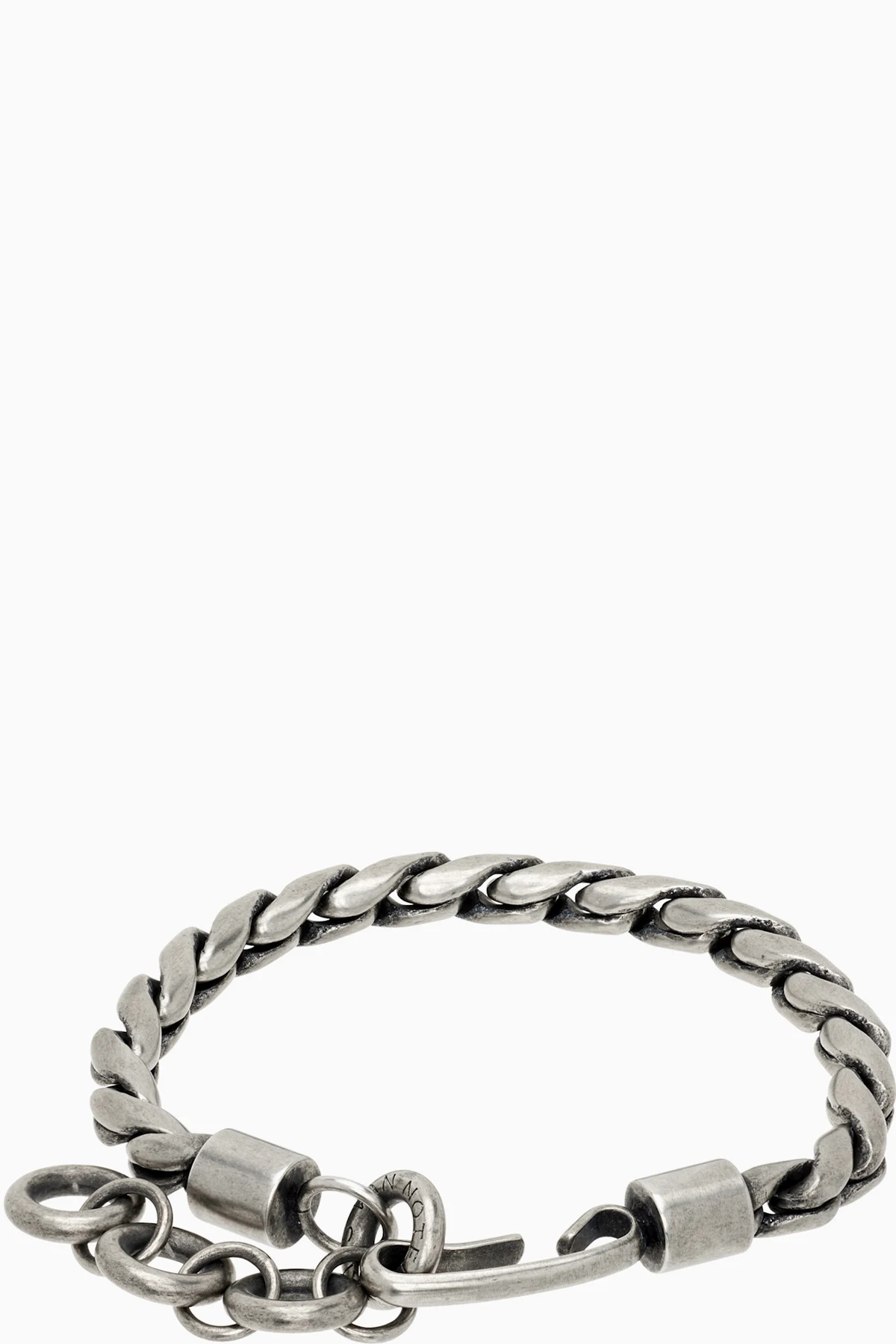 Modified curb chain bracelet in antiqued silver-tone brass.