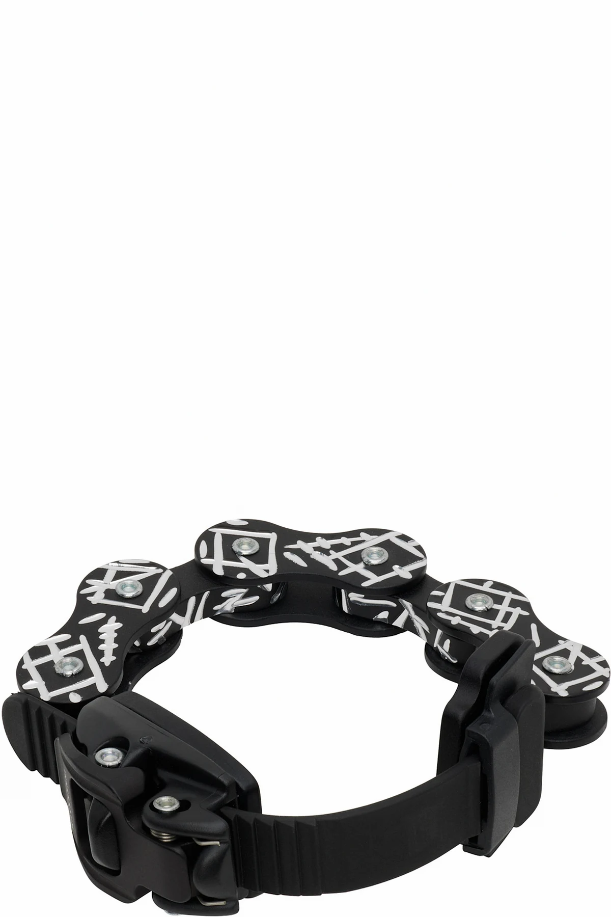 Hand-assembled bike chain bracelet in aluminum and rubber.