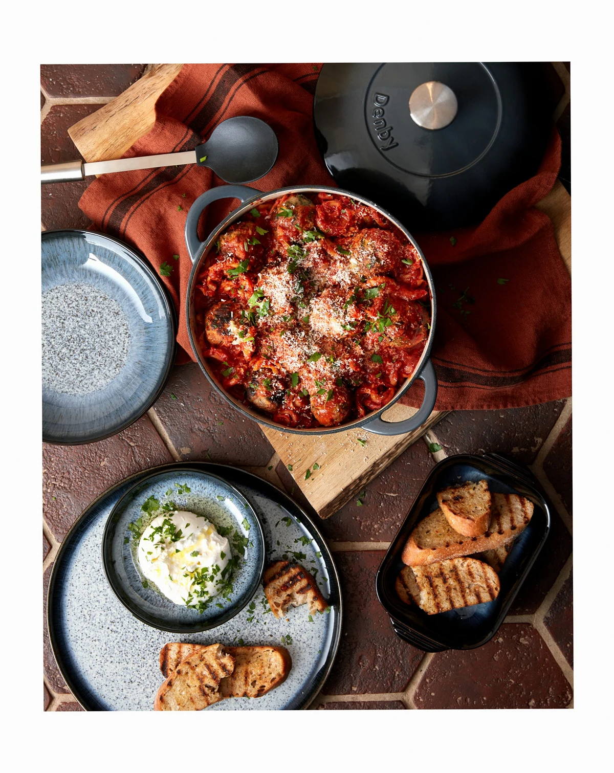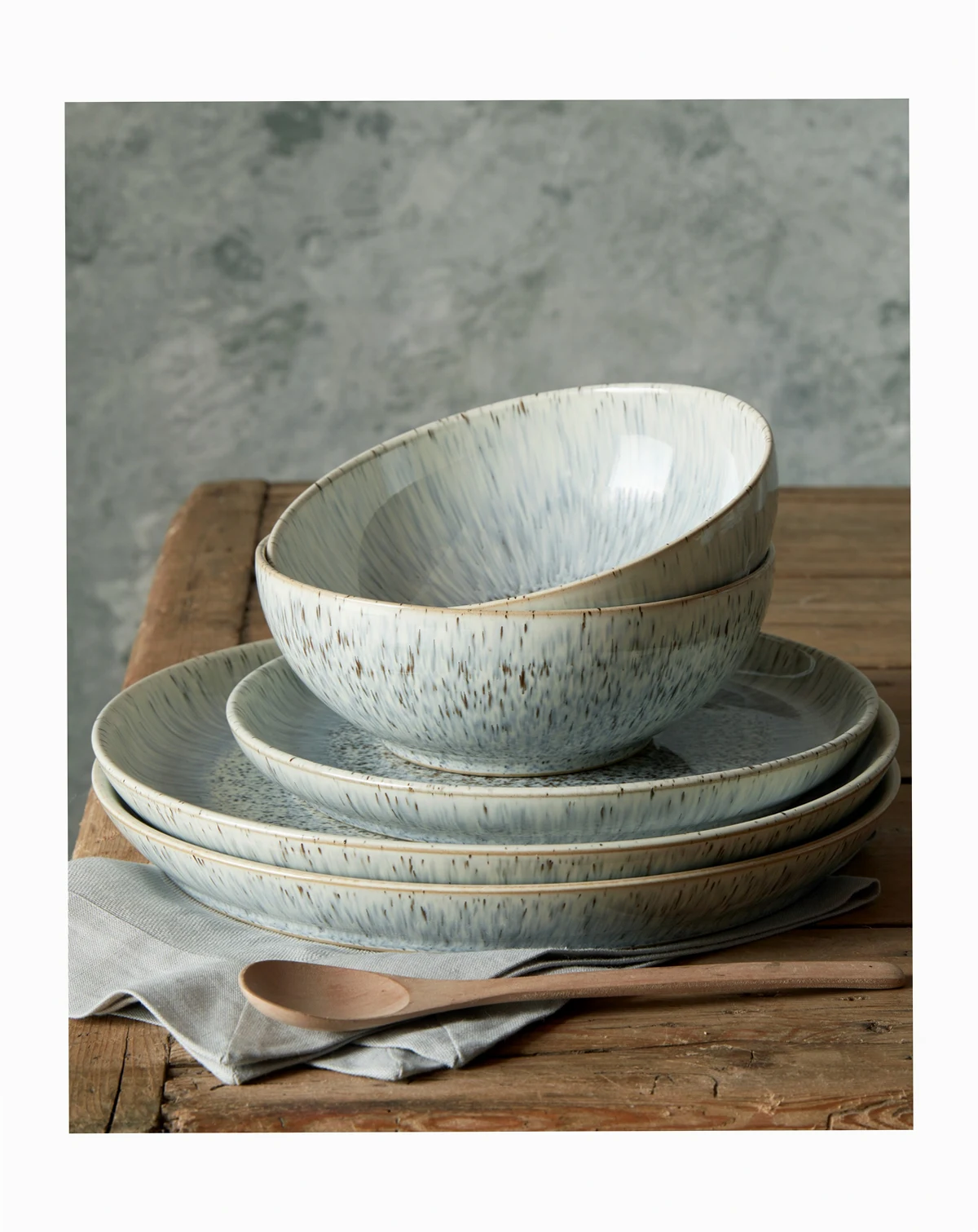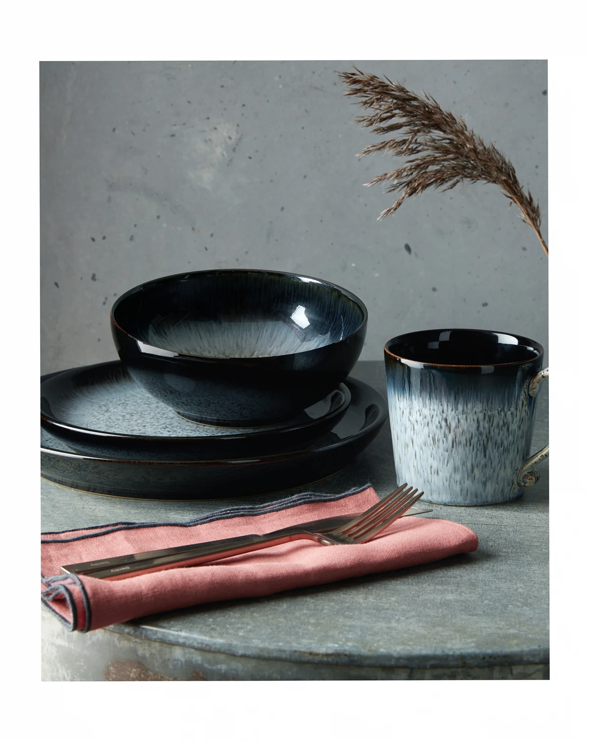 Sturdy and stylish, Denby's Halo dinnerware moves seamlessly from oven to table in distinct stoneware shapes. Its intriguing fade from black to white sets the tone for contemporary-cool casual dining.
