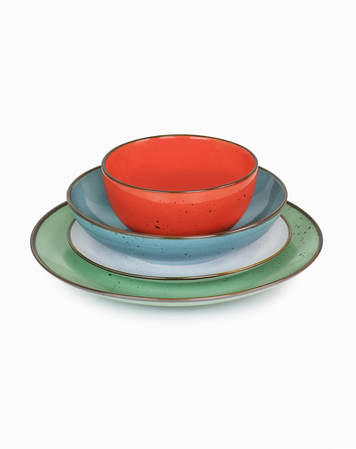 The 20 piece round stoneware dinnerware set in assorted colors by Elama brings style and versatility to your home when entertaining dinner guests.