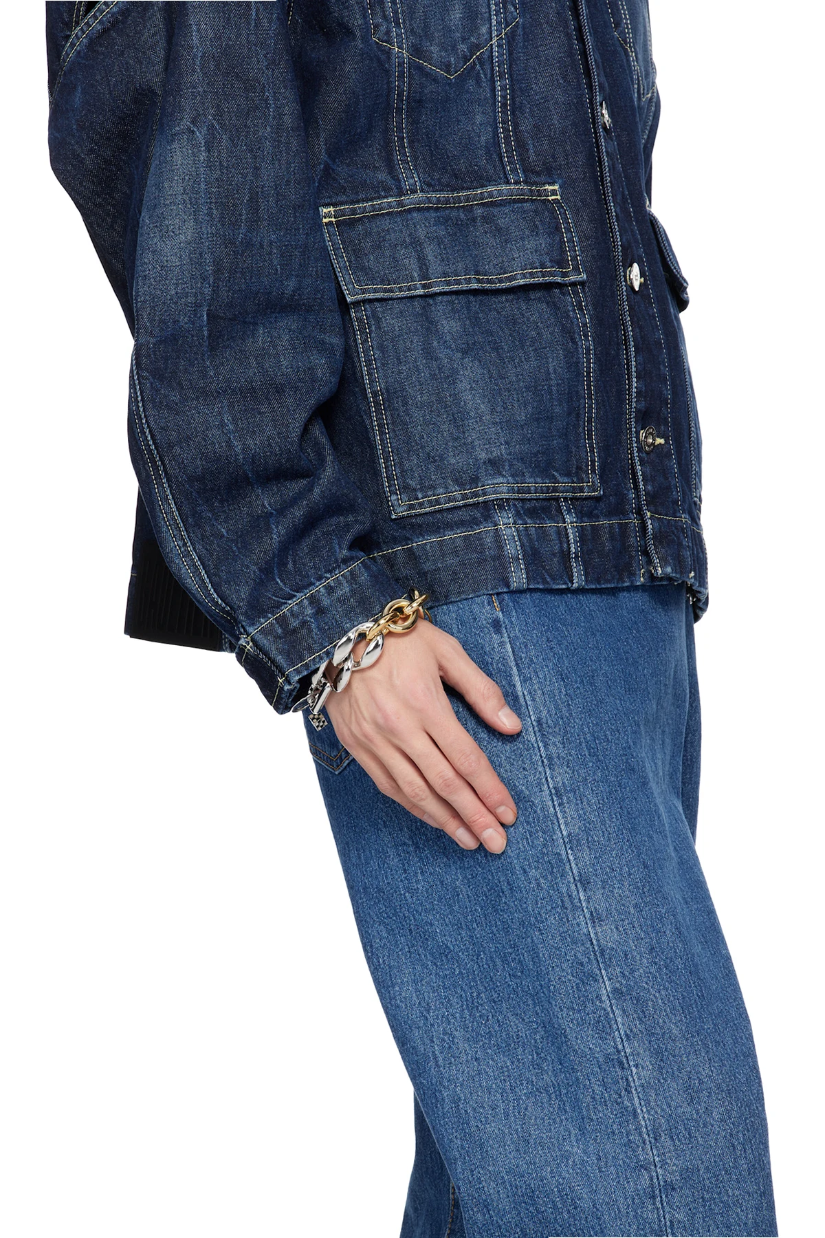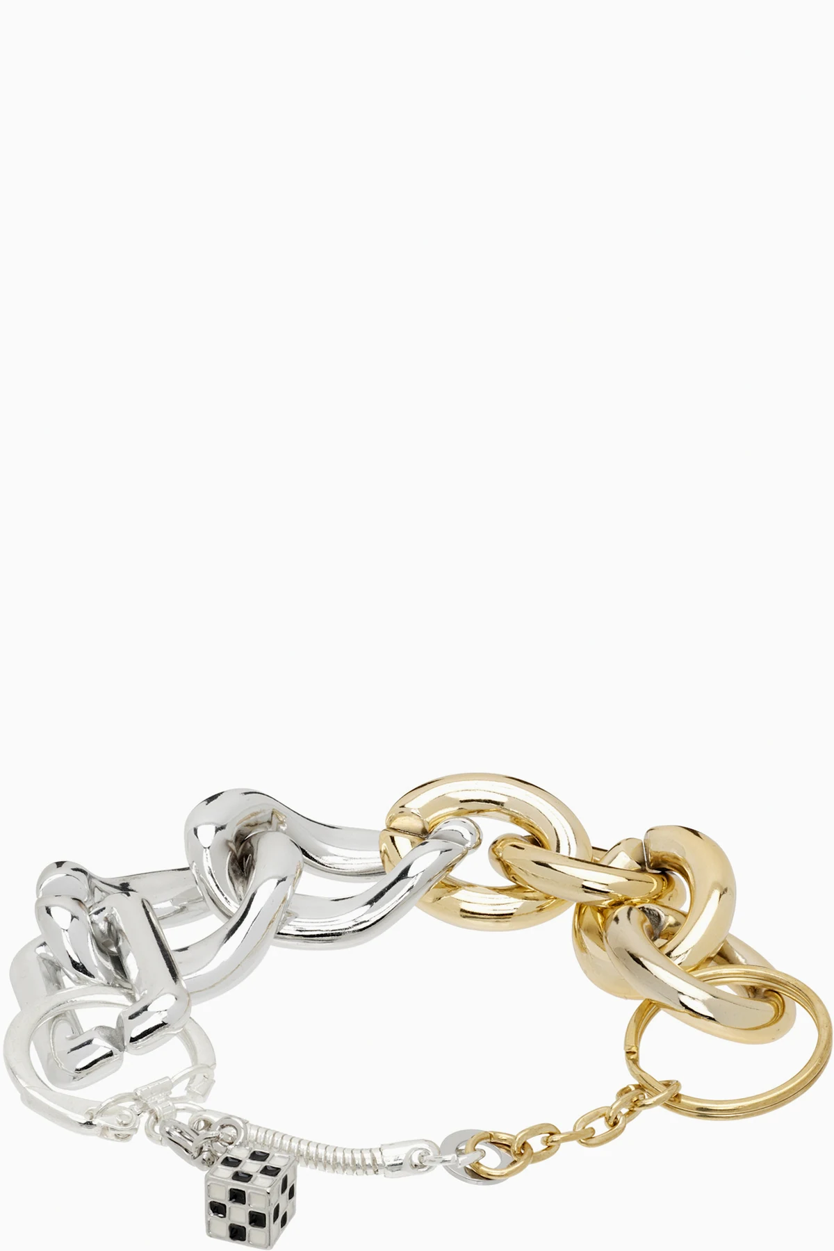 Curb chain bracelet in silver- and gold-tone.