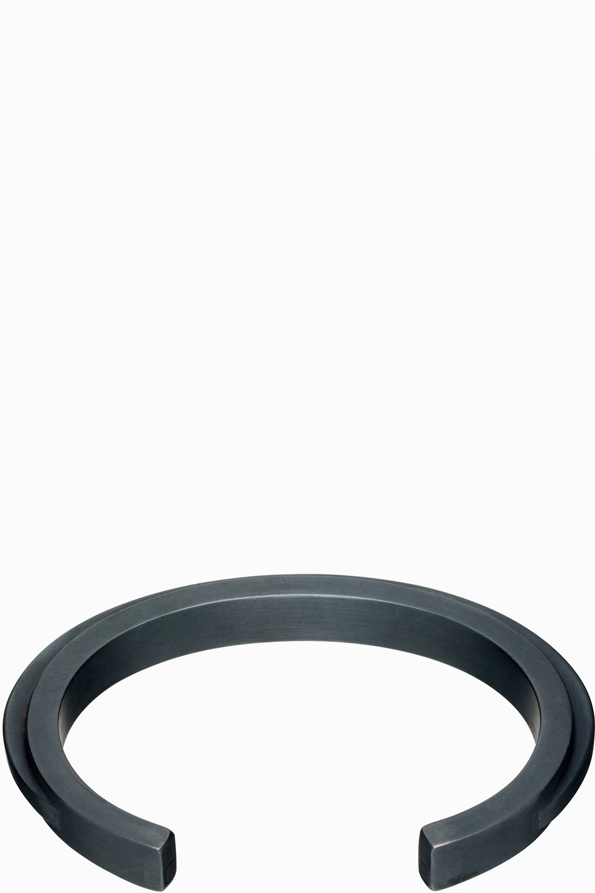 Handcrafted open-cuff bracelet in oxidized sterling silver. Hallmarking engraved at inner cuff.
