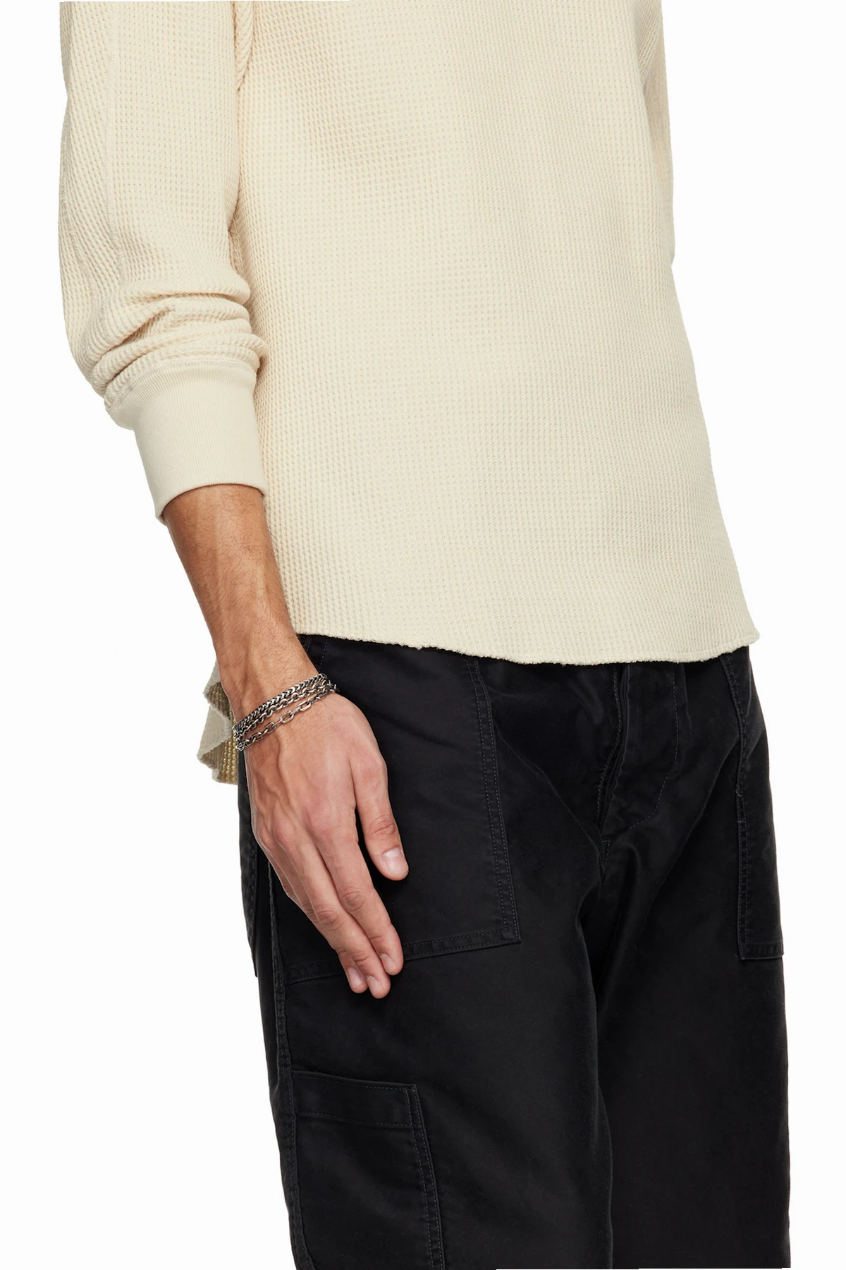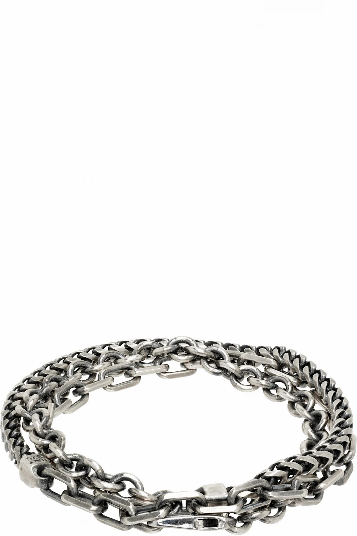 Wraparound cable- and snake-chain bracelet in antiqued sterling silver.