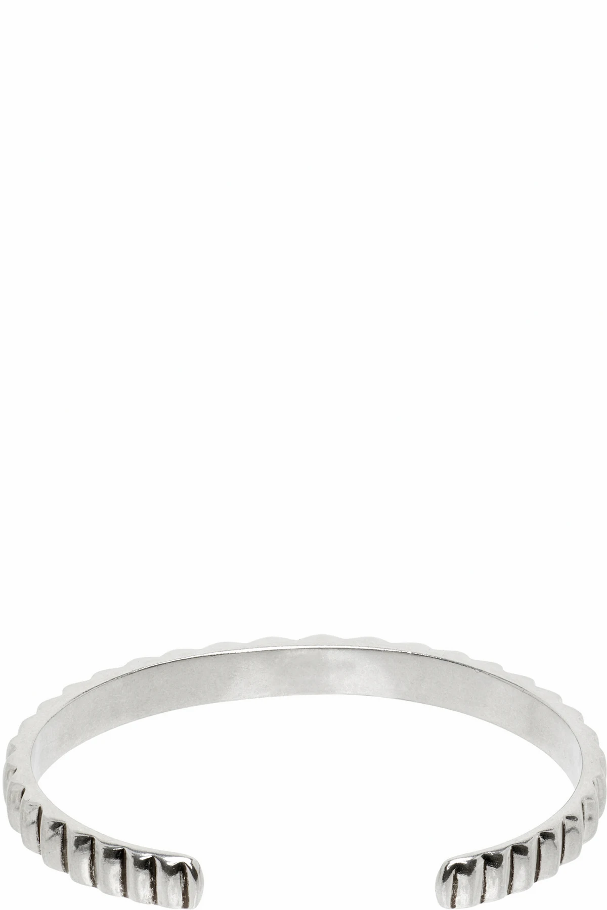 Open-cuff bracelet in antiqued silver-tone brass. Studded detailing throughout.