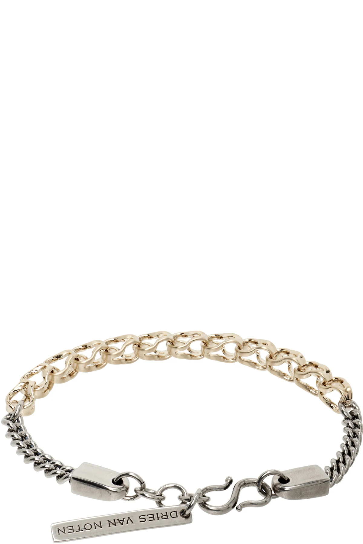 Foxtail and curb-chain bracelet in antiqued silver- and gold-tone brass. Logo plaque at hook-eye fastening.