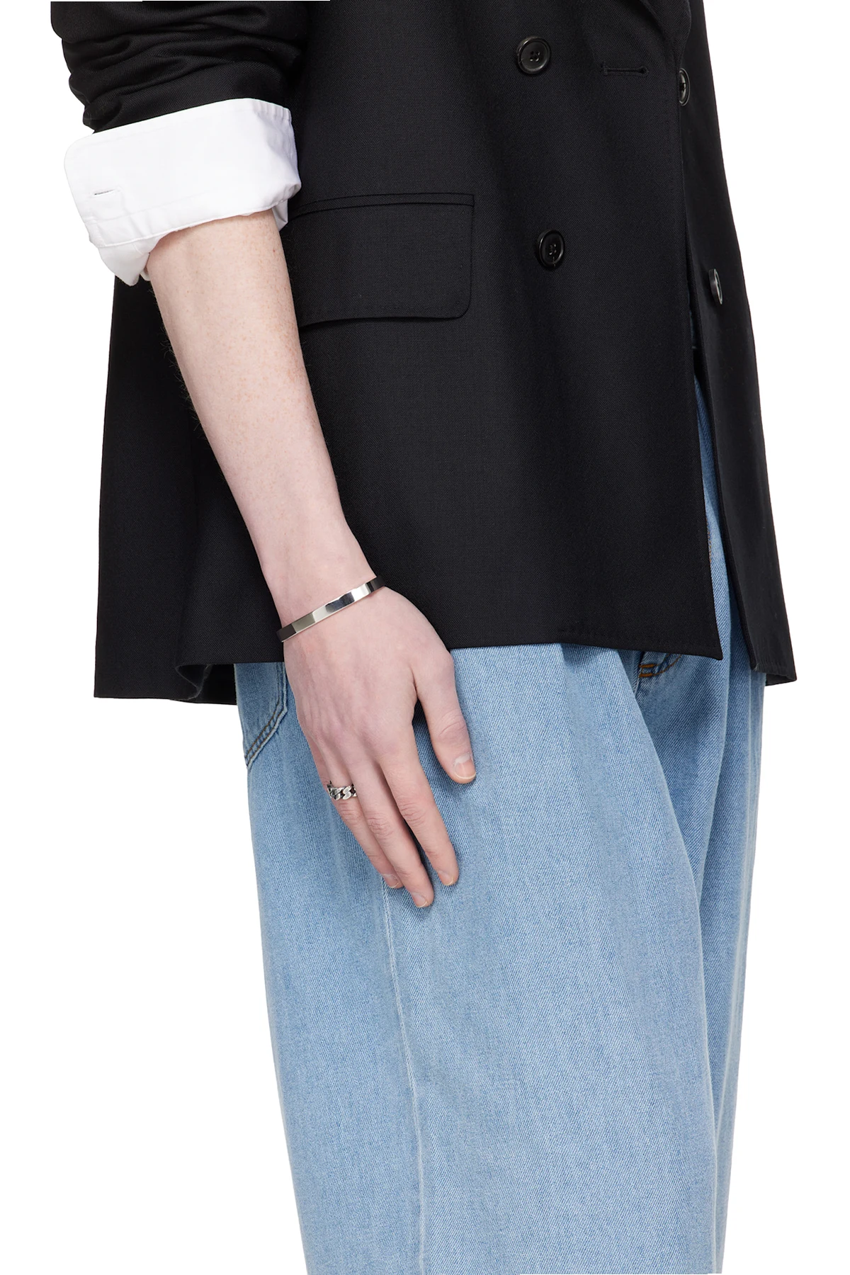 Open cuff bracelet in recycled sterling silver. Logo and hallmarking at ends.