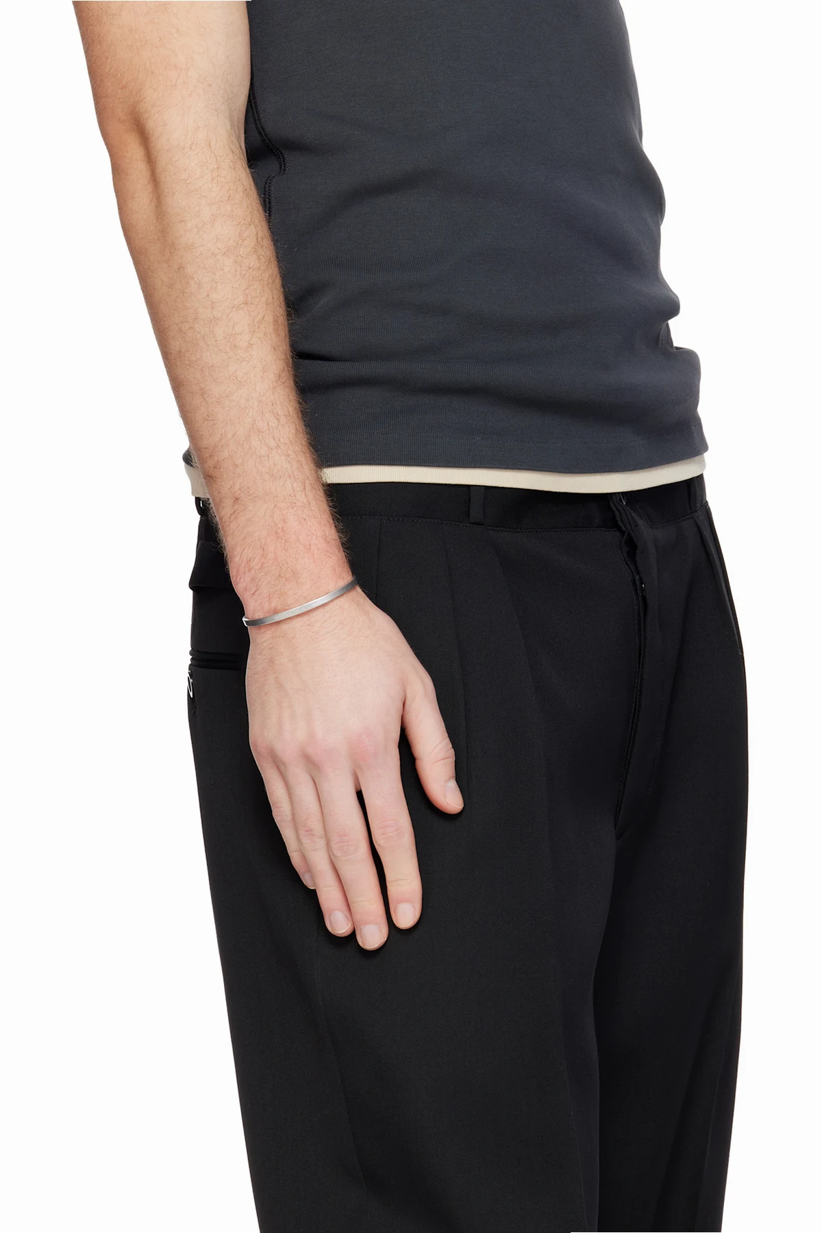 Open cuff bracelet in sterling silver.