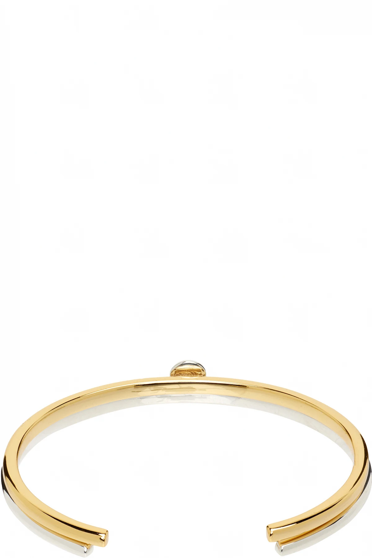 Set of two open-cuff bracelets in sterling silver and gold-tone sterling silver.
