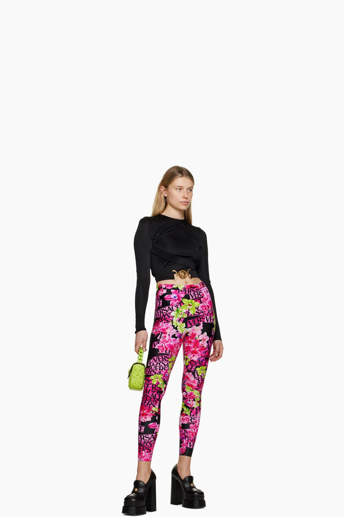 · Strap with signature Medusa hardware at vamp