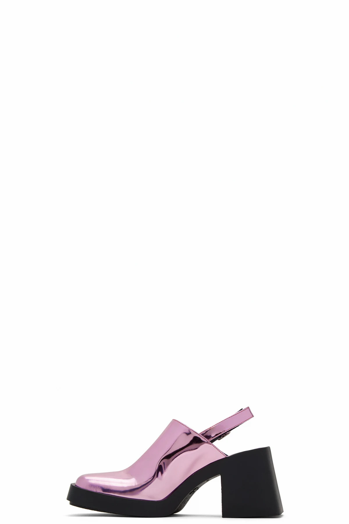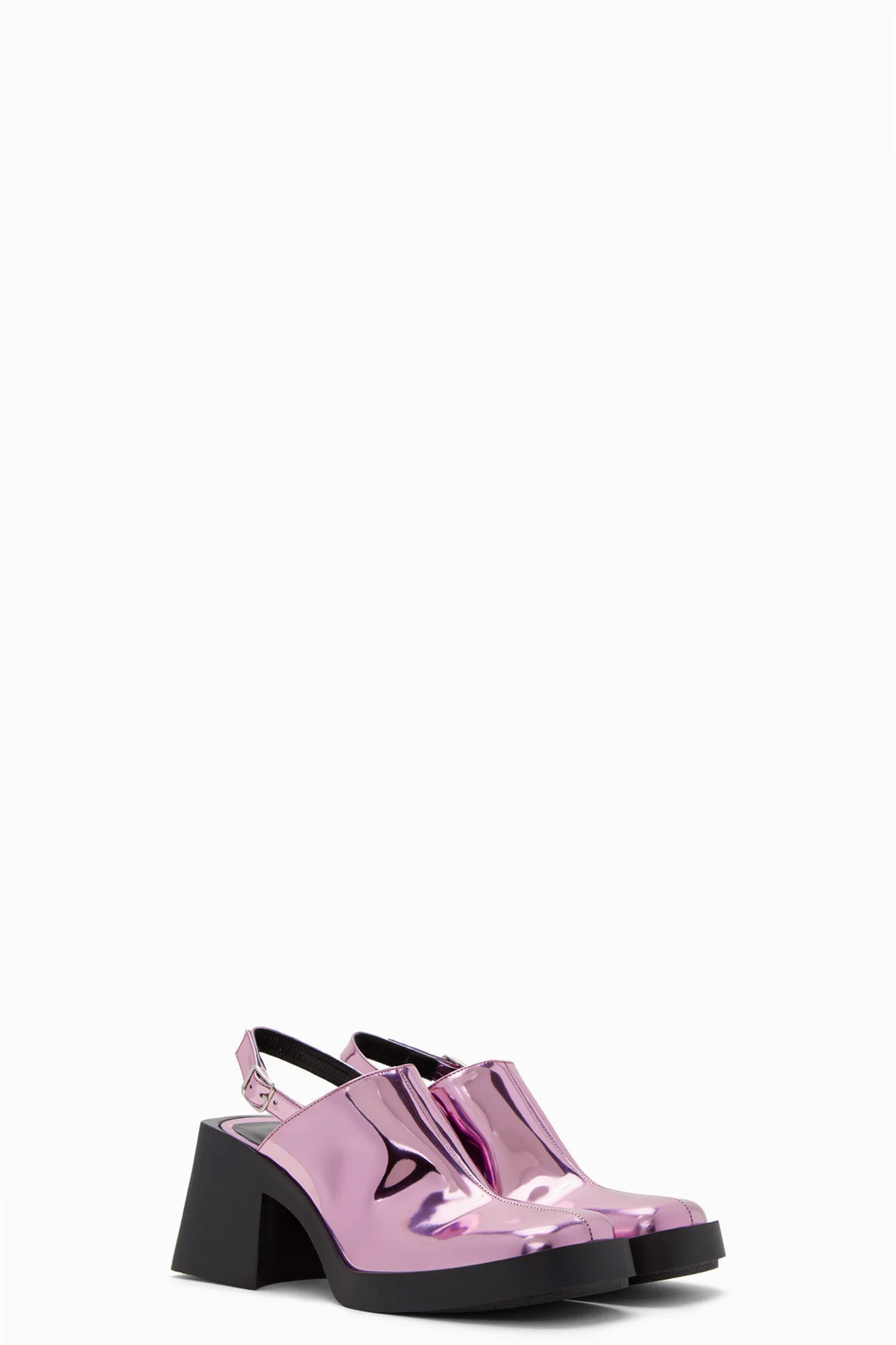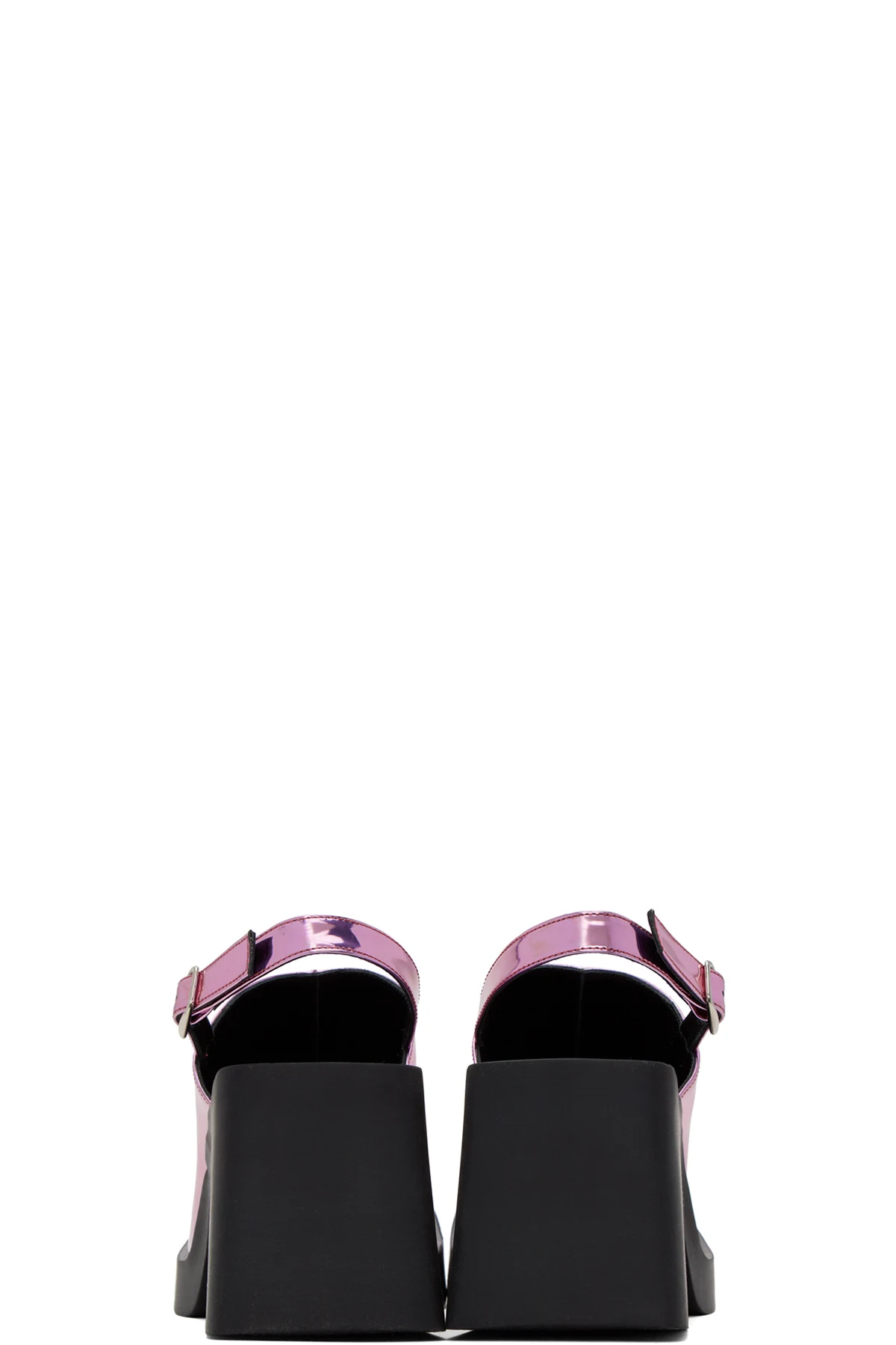 Handcrafted patent leather heels in metallic pink.
