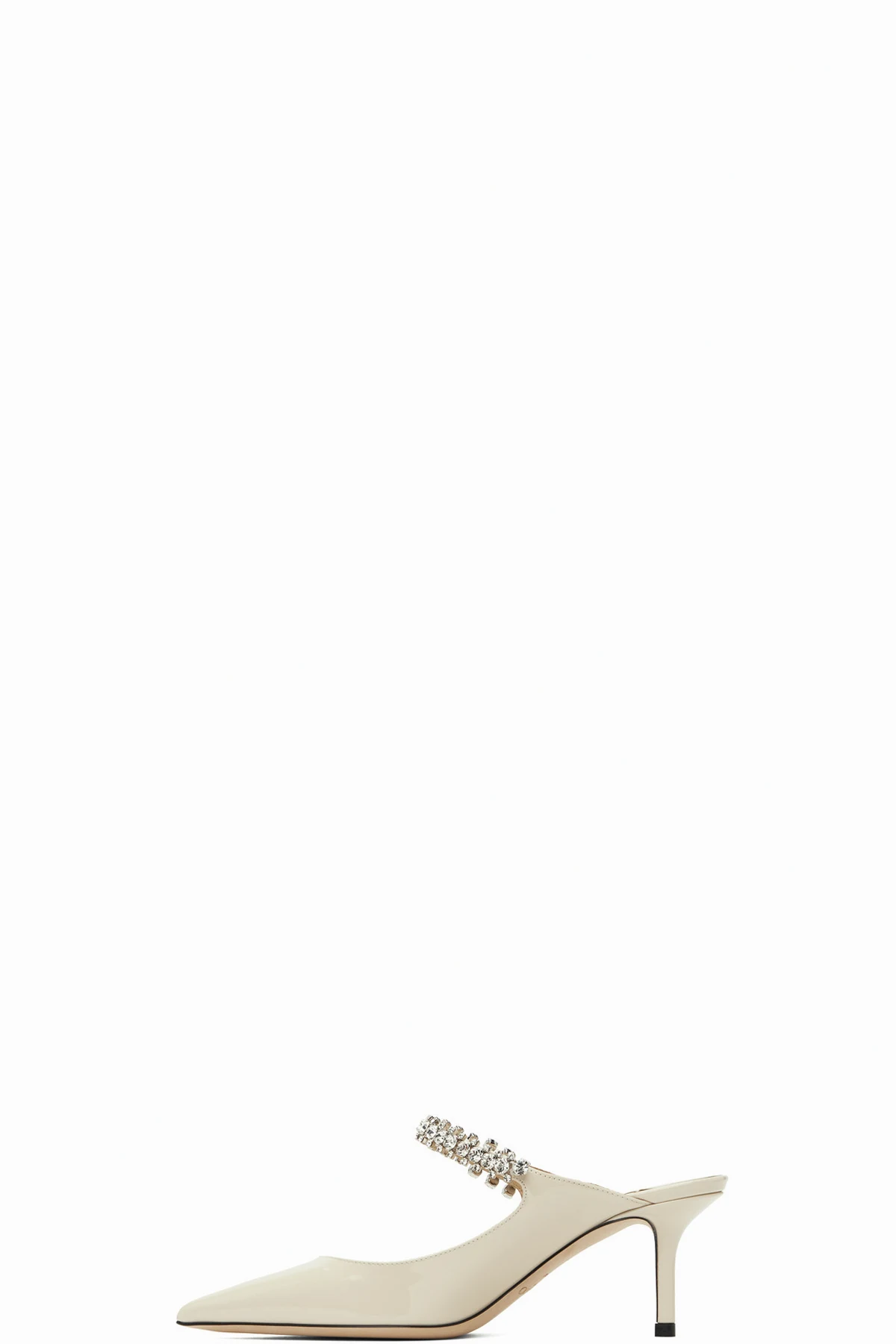 Patent leather slip-on heels in off-white.