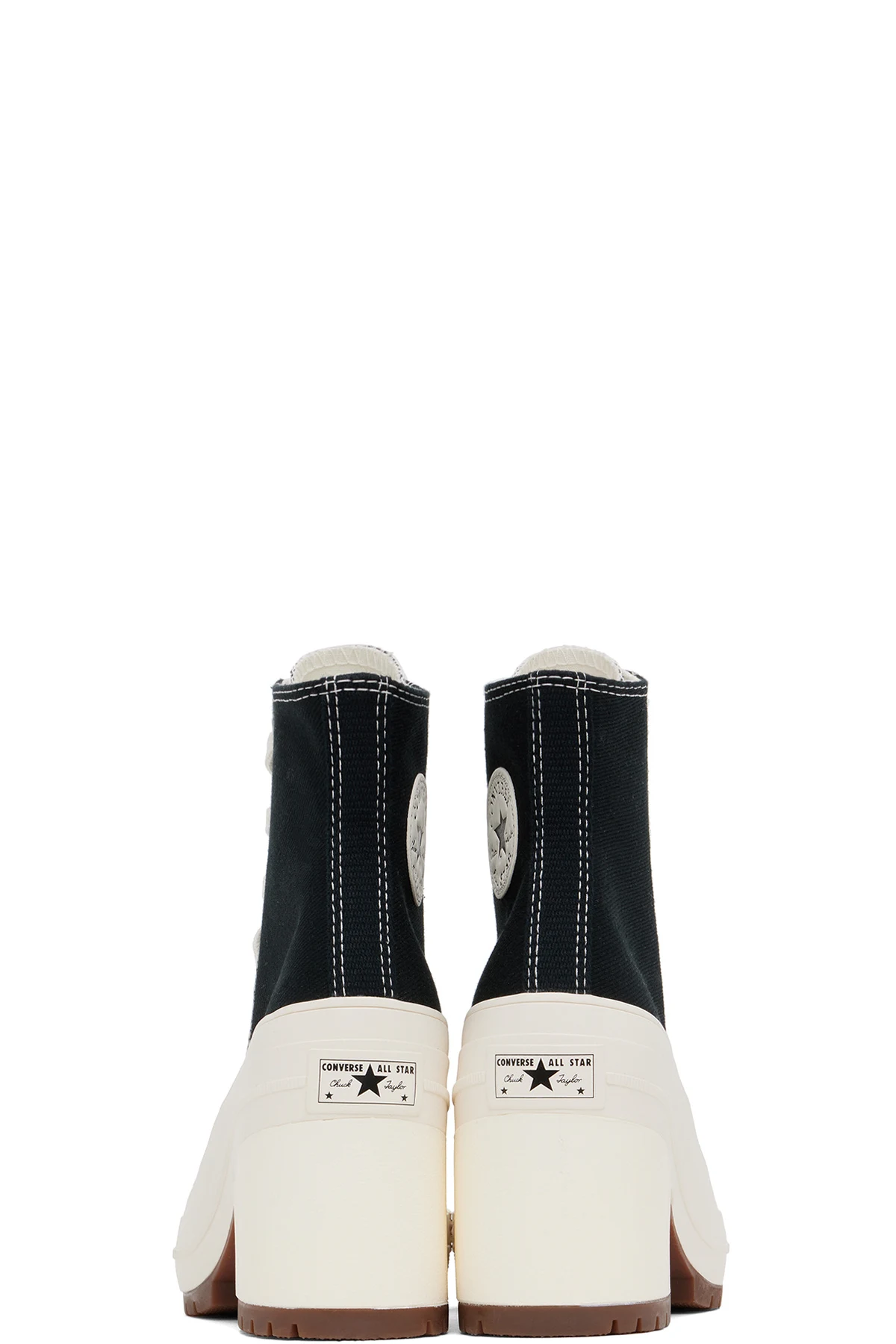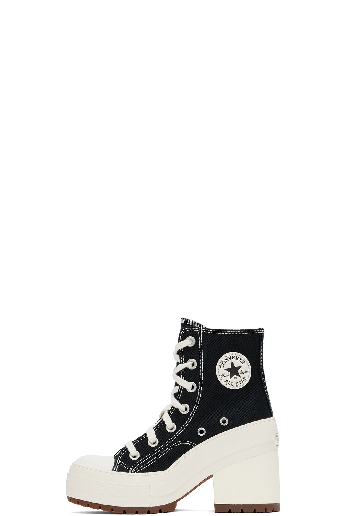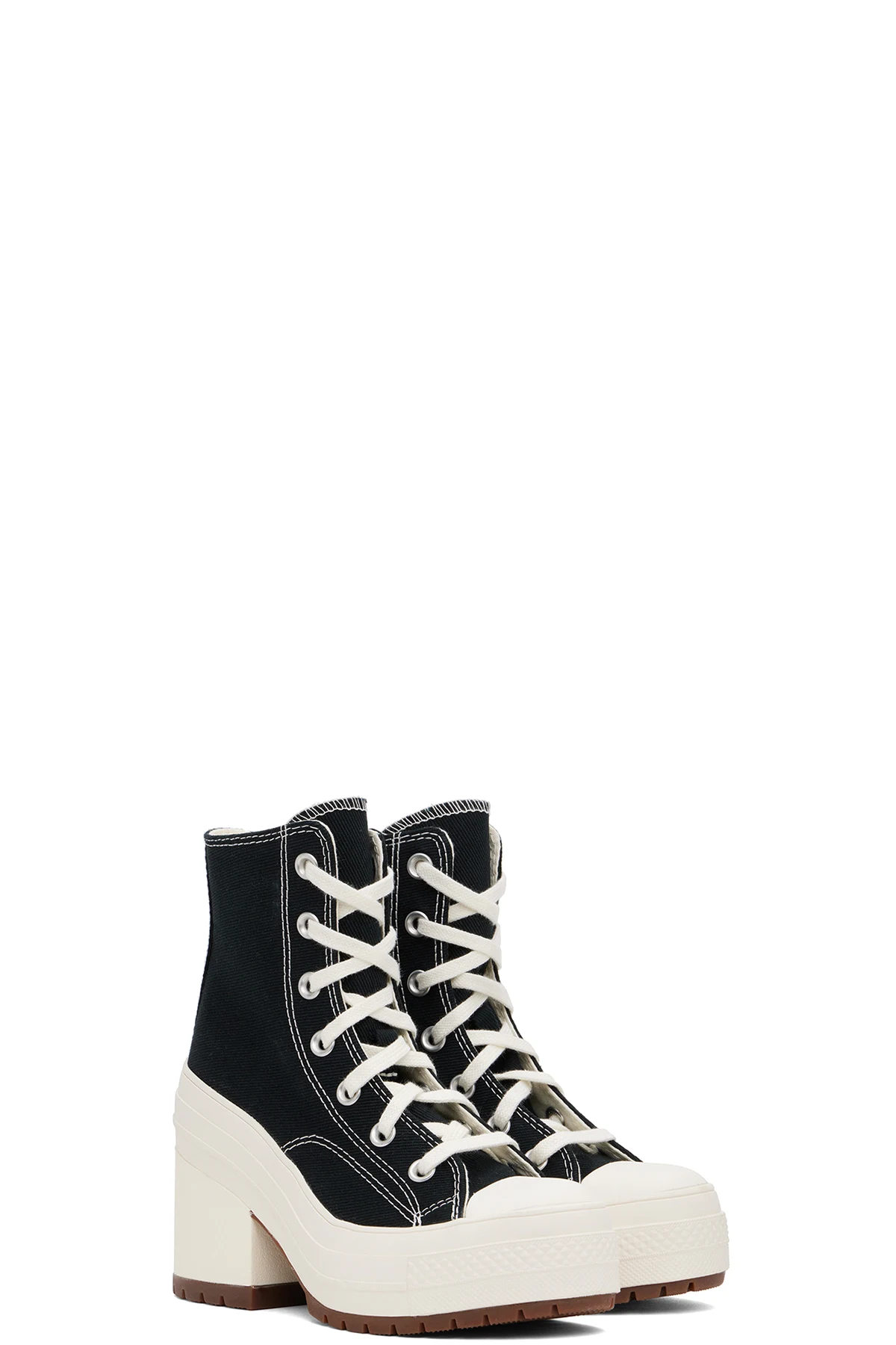 Ankle-high canvas heels in black.