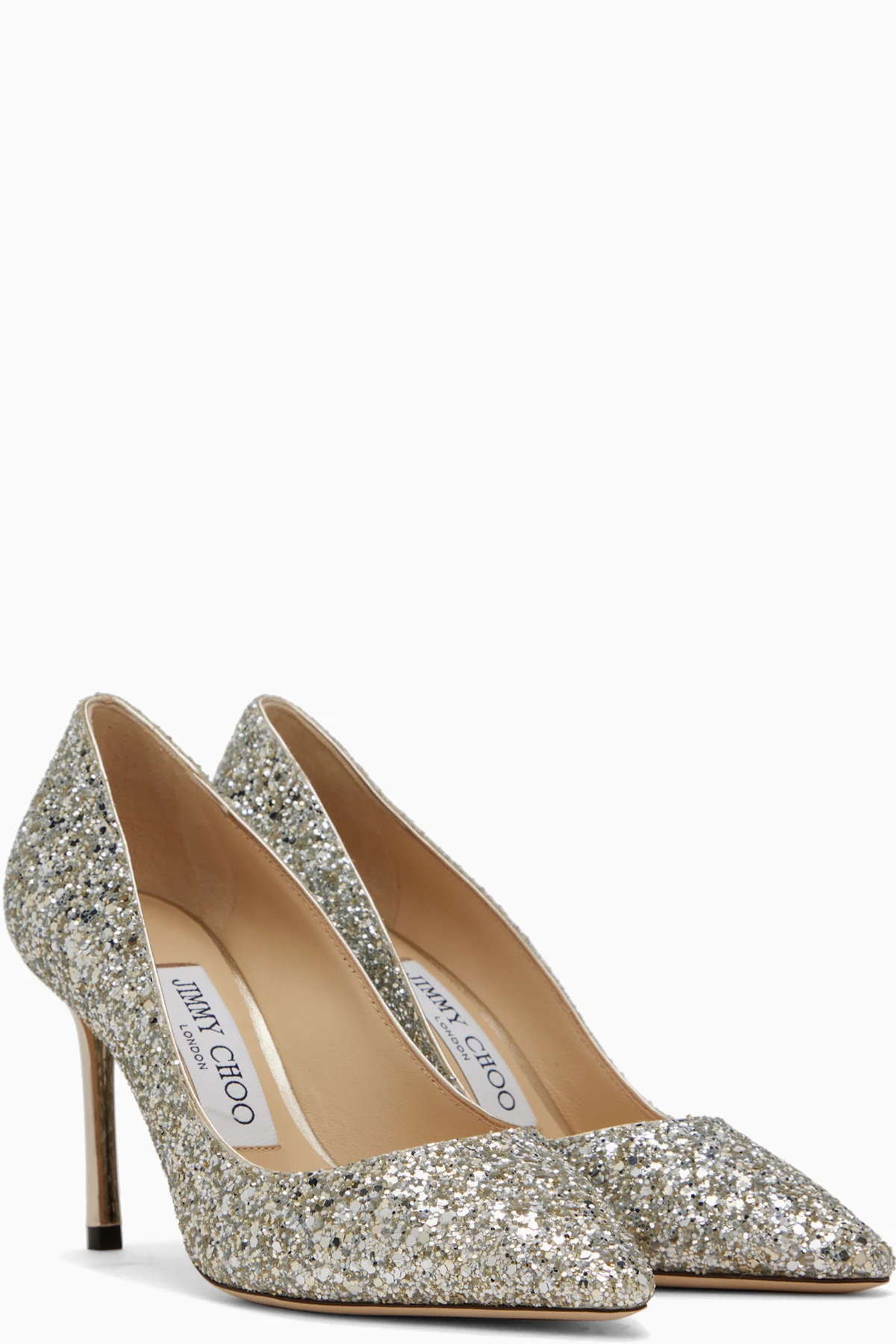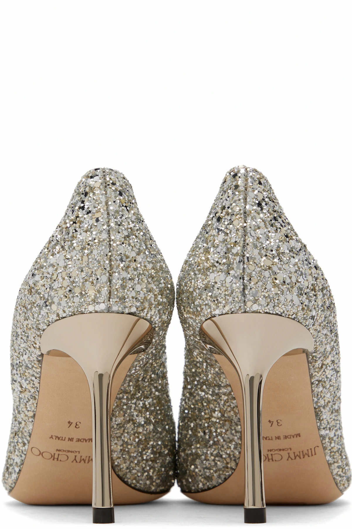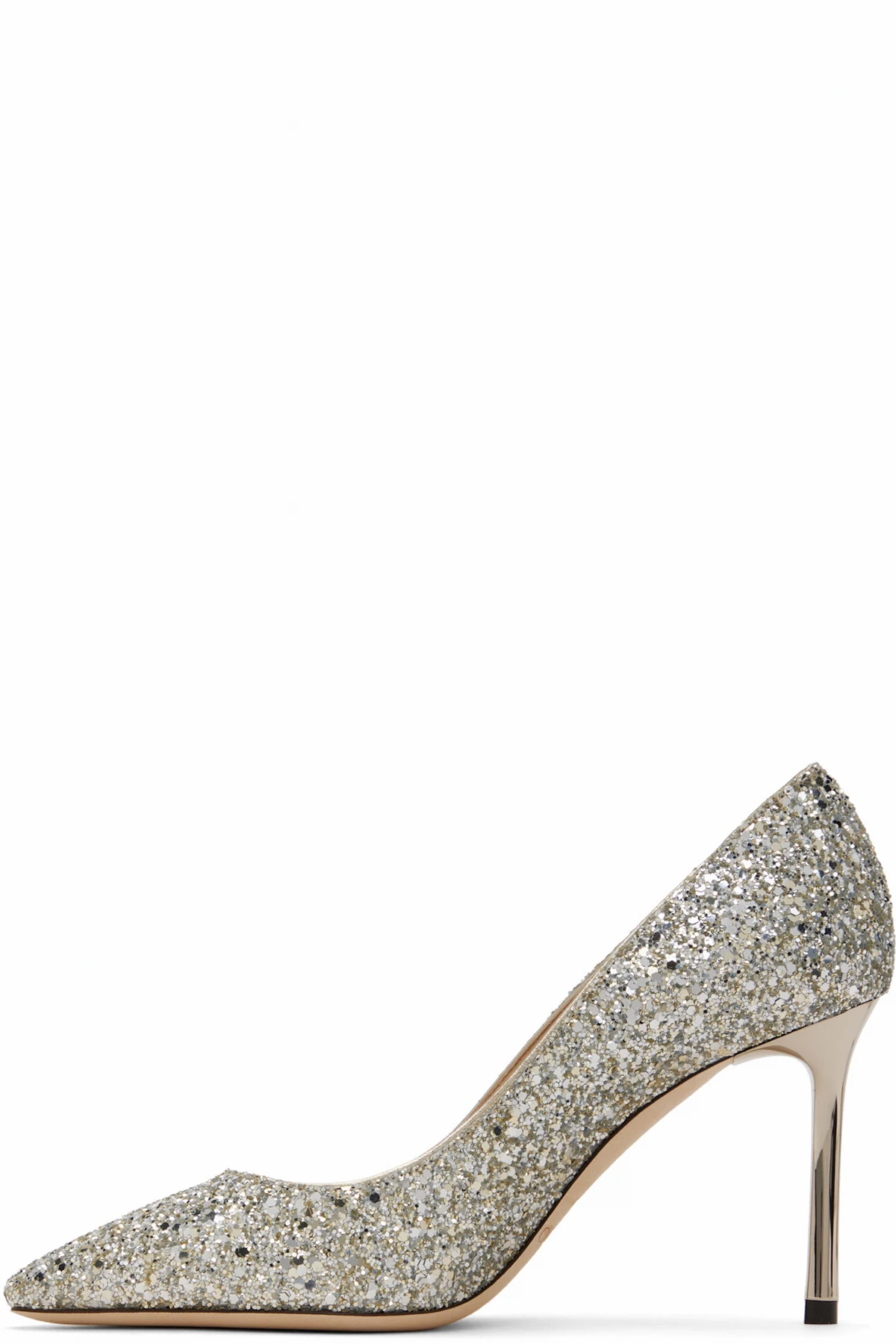 Glittered heels in silver tone.