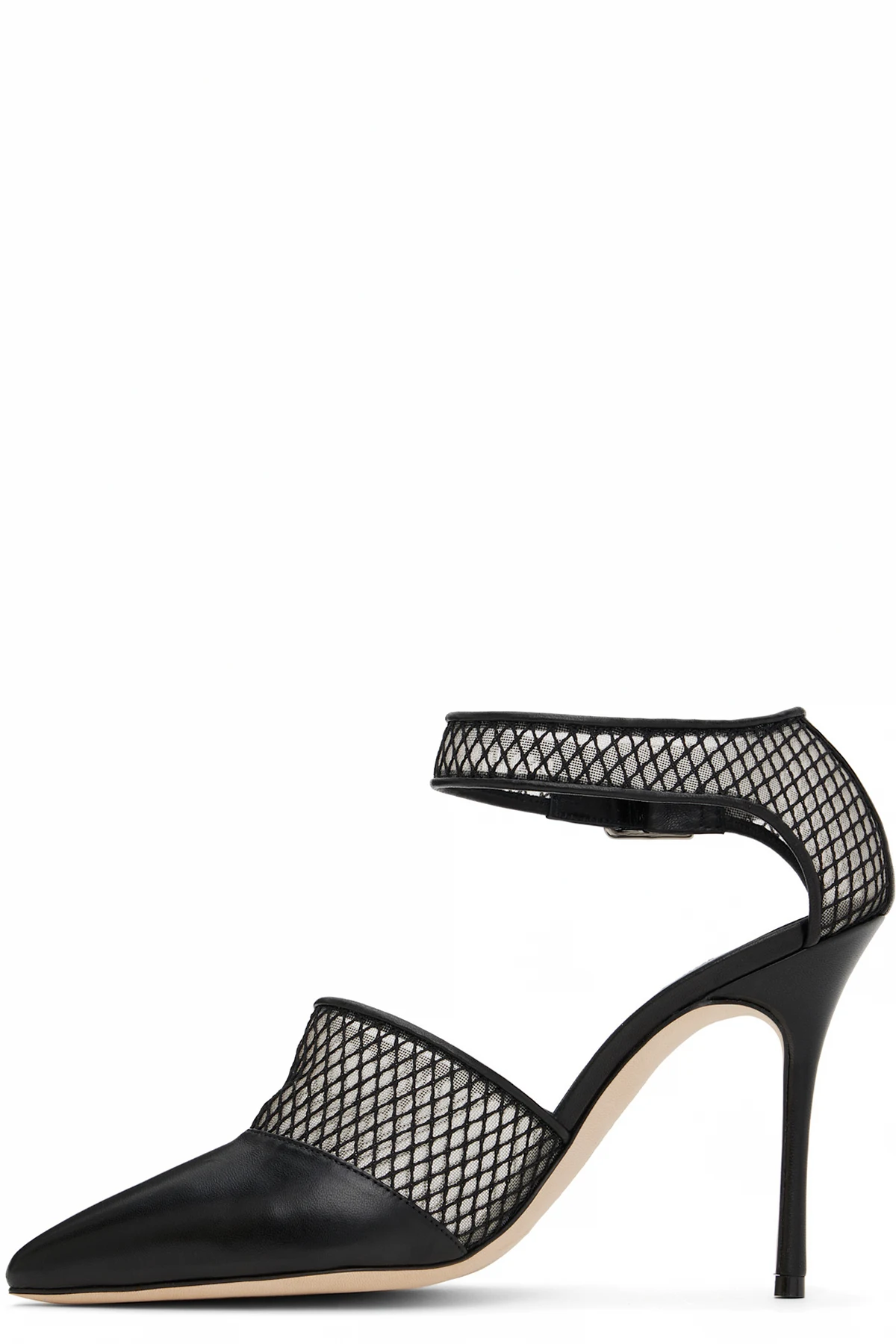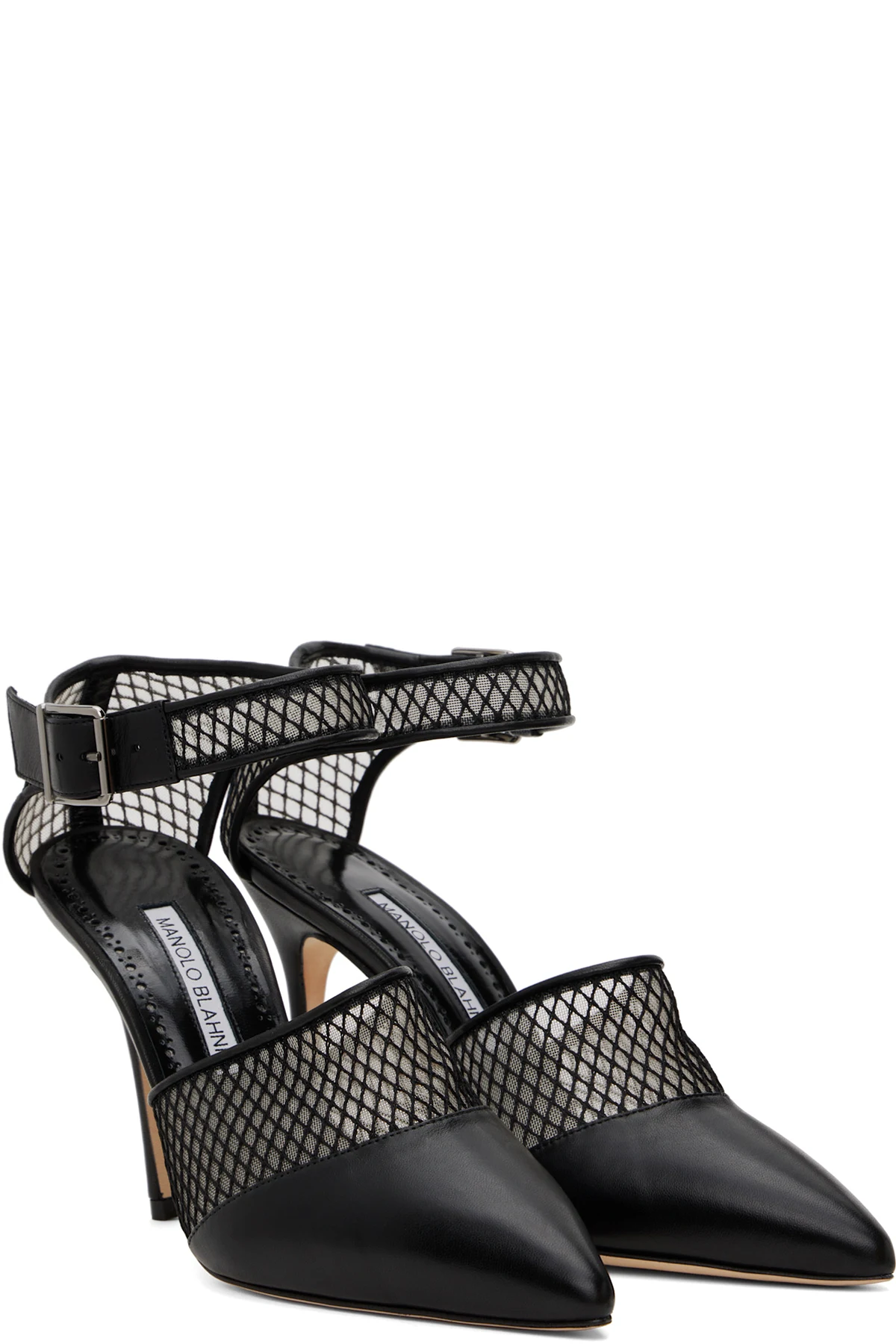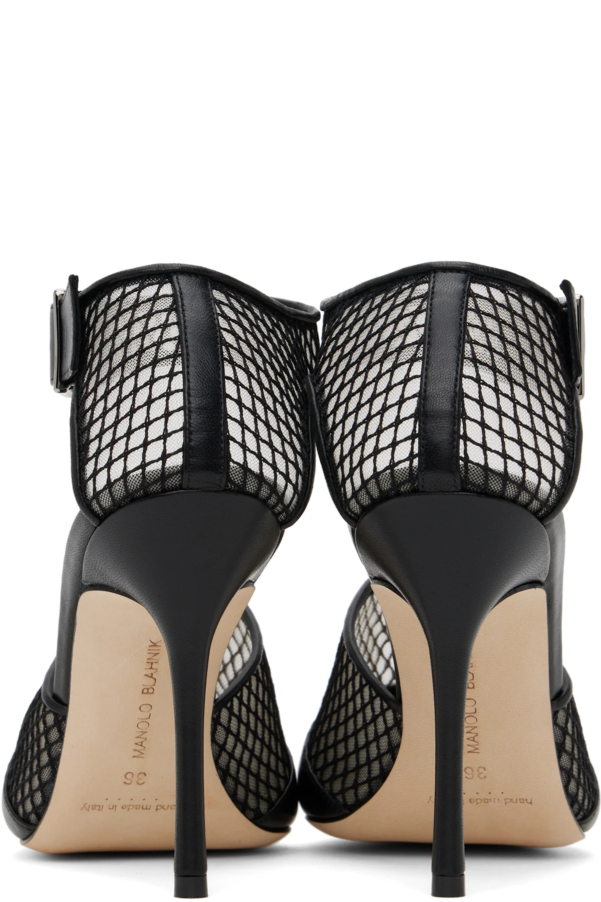 Handcrafted mesh and grained nappa lambskin heels in black.