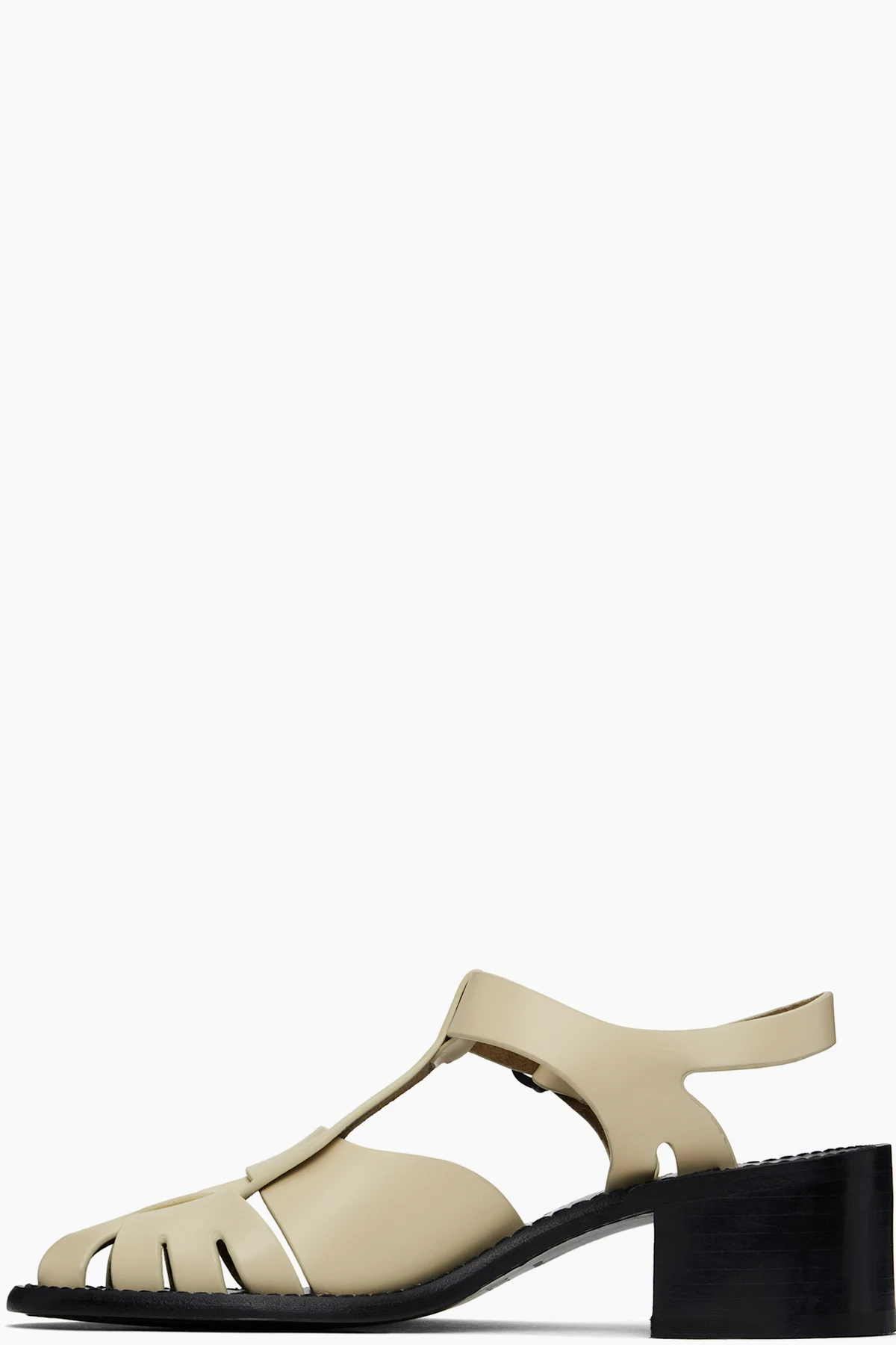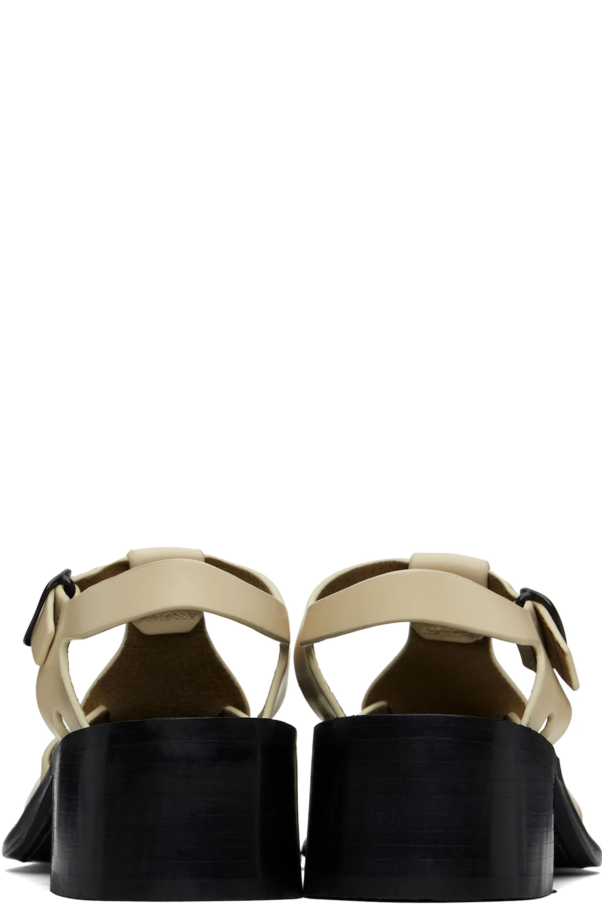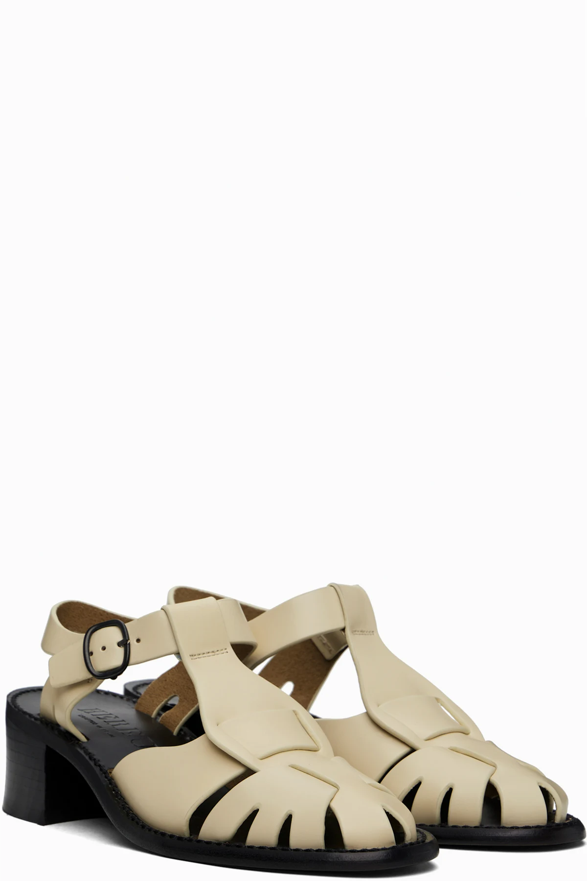 Handcrafted polished calfskin heeled sandals in beige.