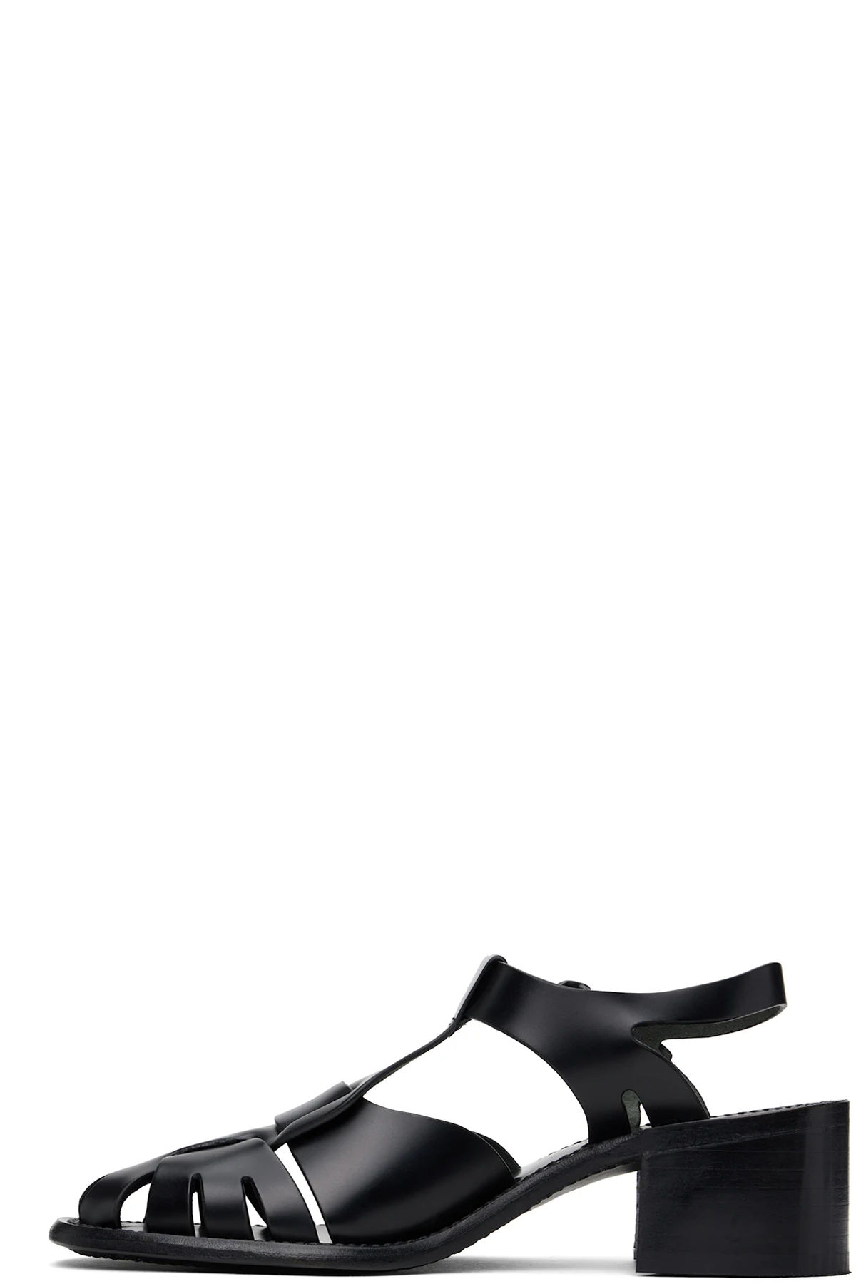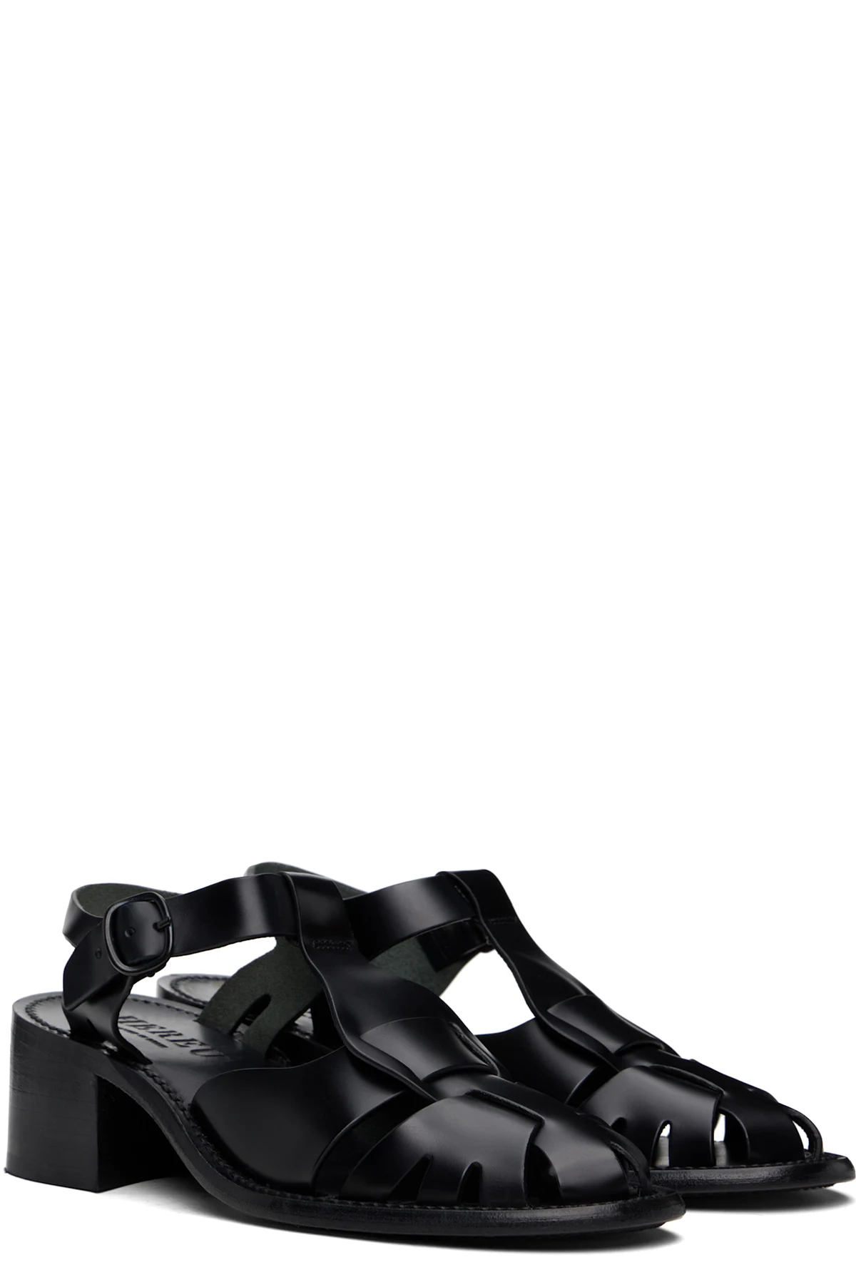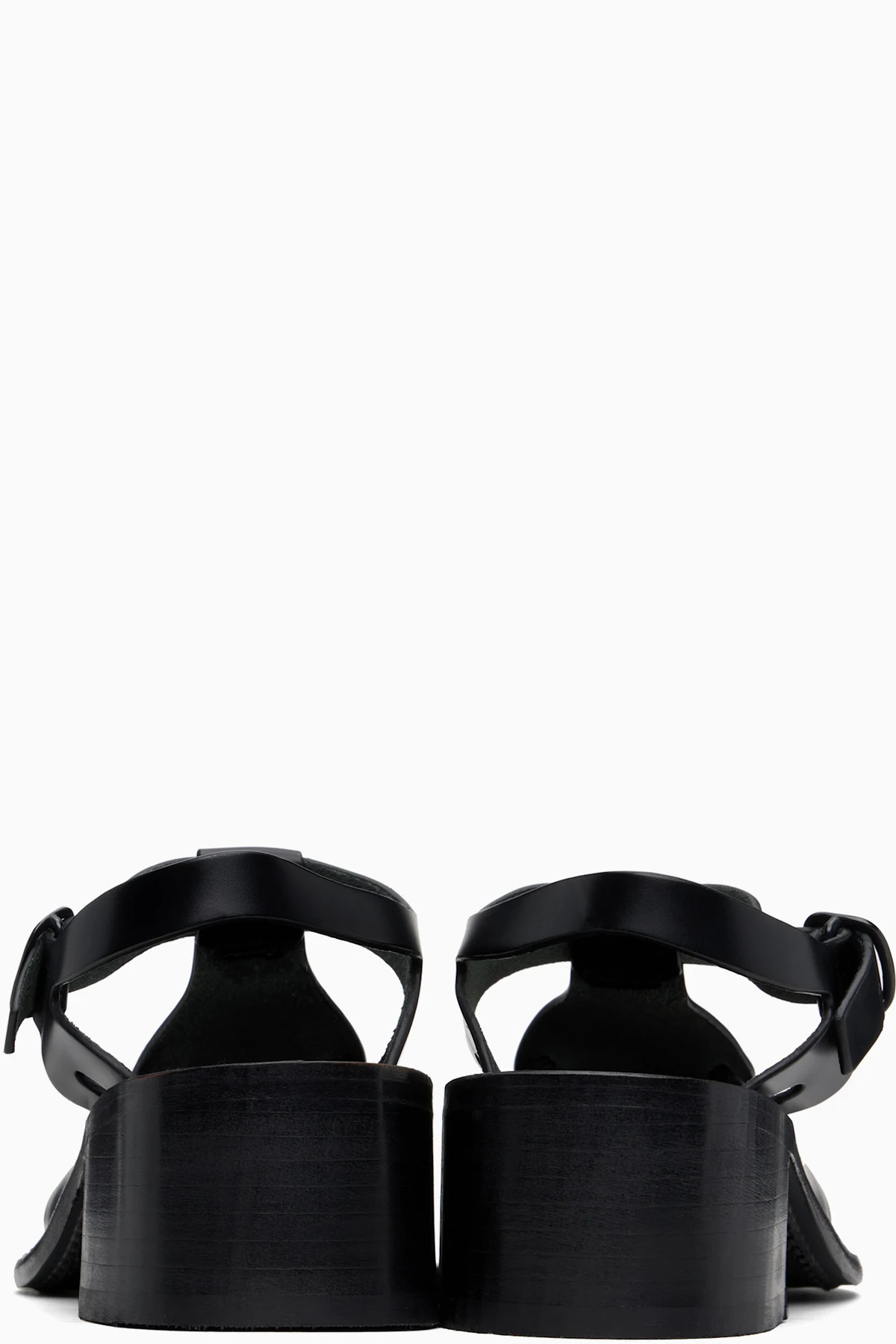 Handcrafted polished calfskin heels in black.