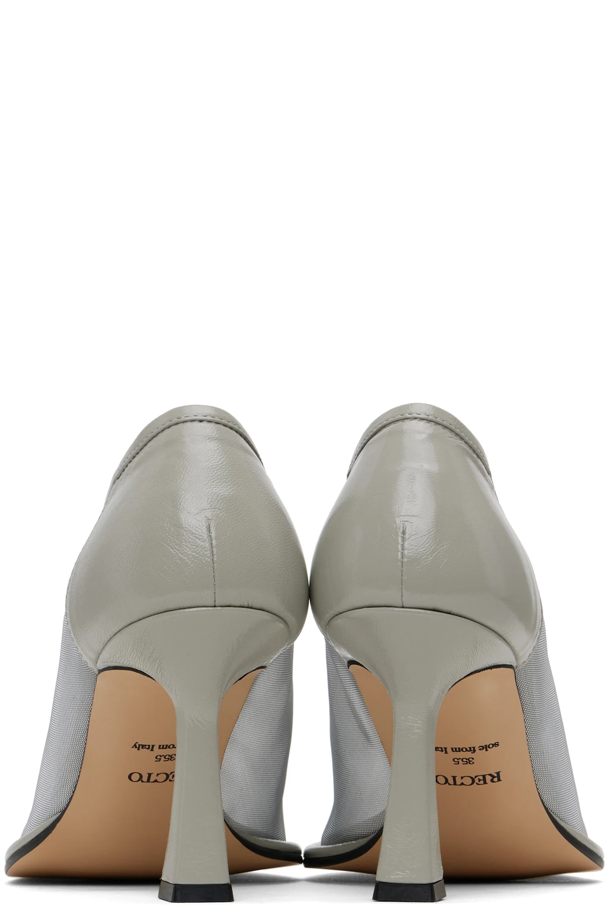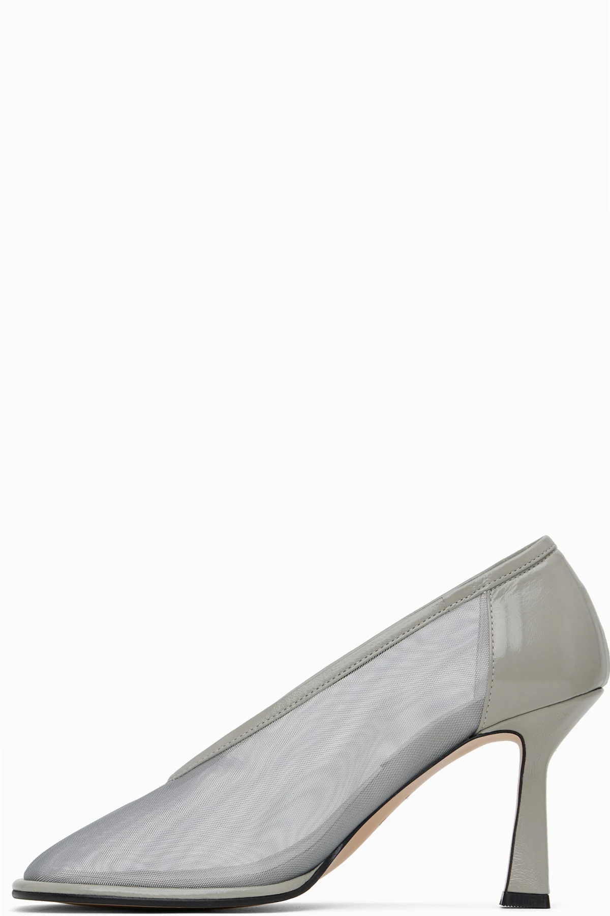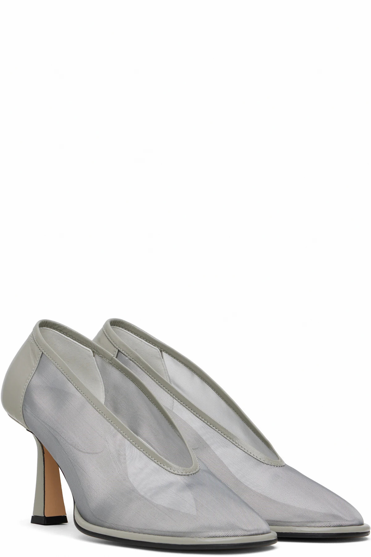 Nylon mesh and buffed leather heels in gray.