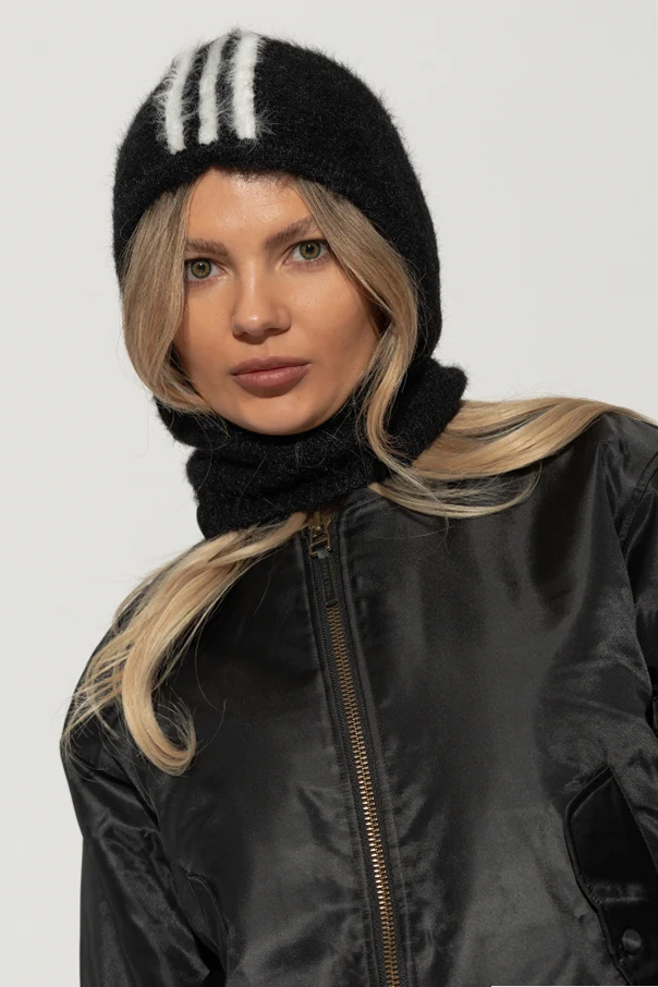 Elevate your contemporary wardrobe with the Adidas Originals Turtleneck Hood with Logo Accent . Exquisitely crafted from a plush, high-quality knit reminiscent of mohair, this balaclava-inspired silhouette gracefully envelopes the head and neck, providing unparalleled warmth and a modern edge.