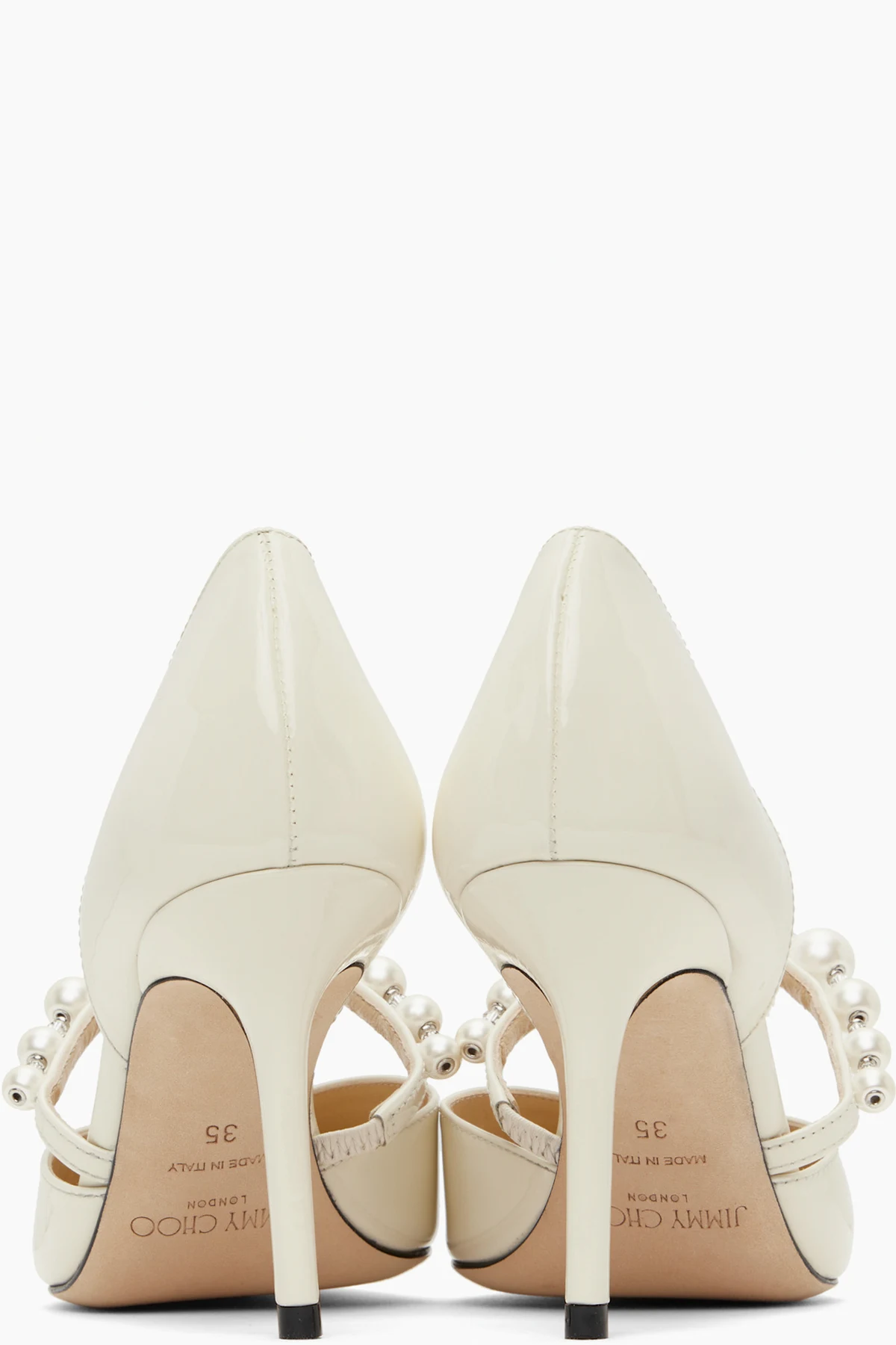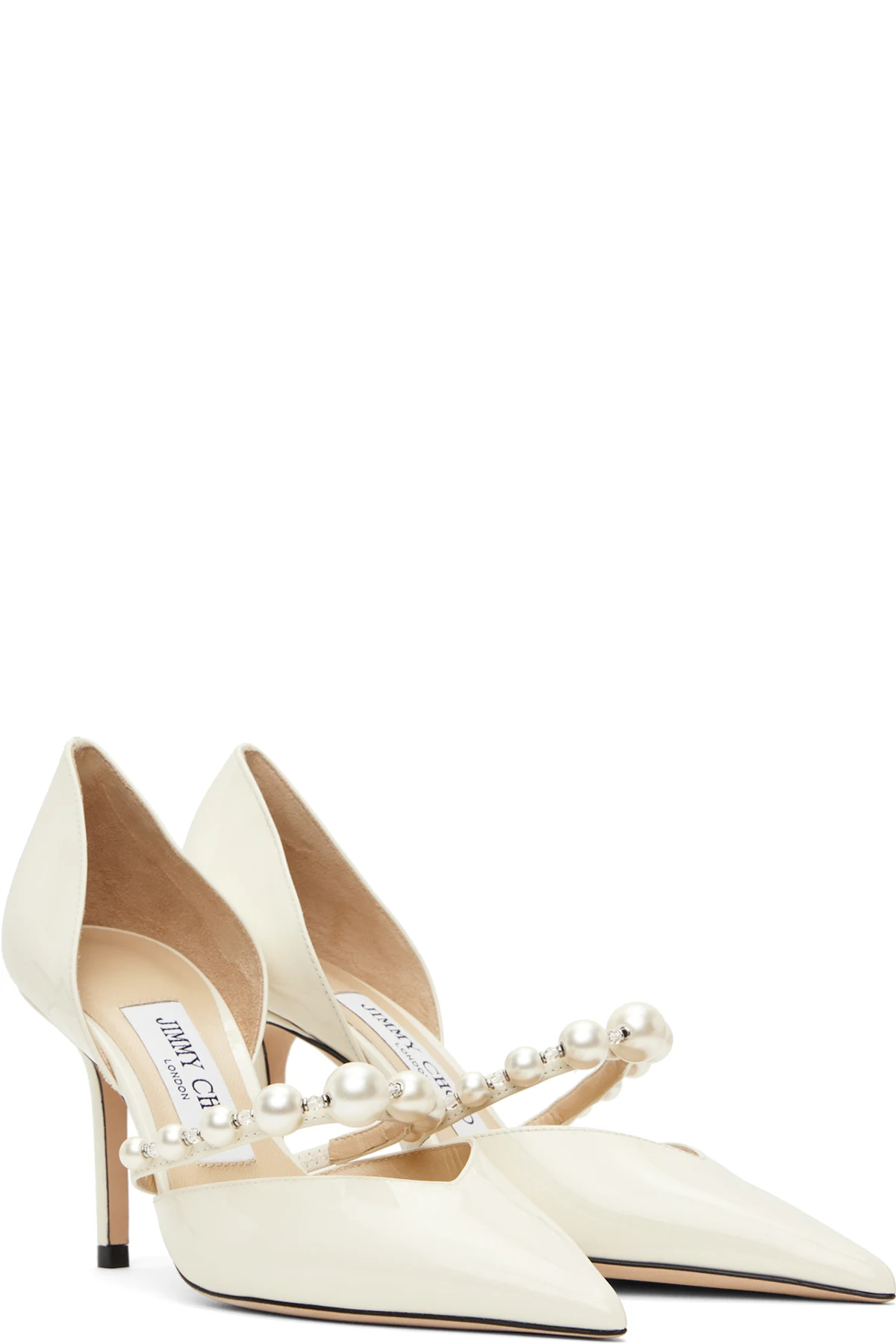 Patent leather heels in off-white.