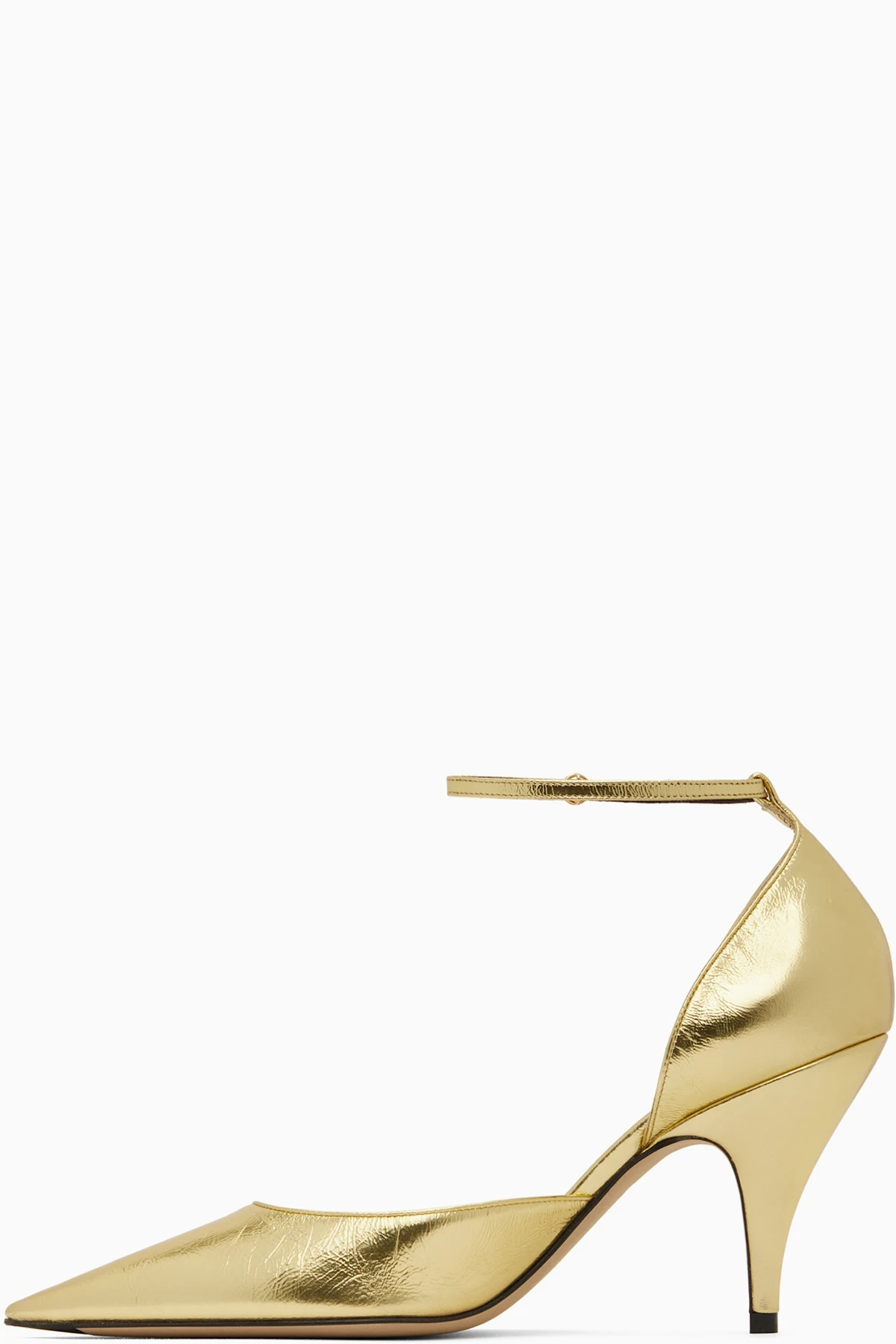 Crinkled foil-coated nappa lambskin heels in gold tone.