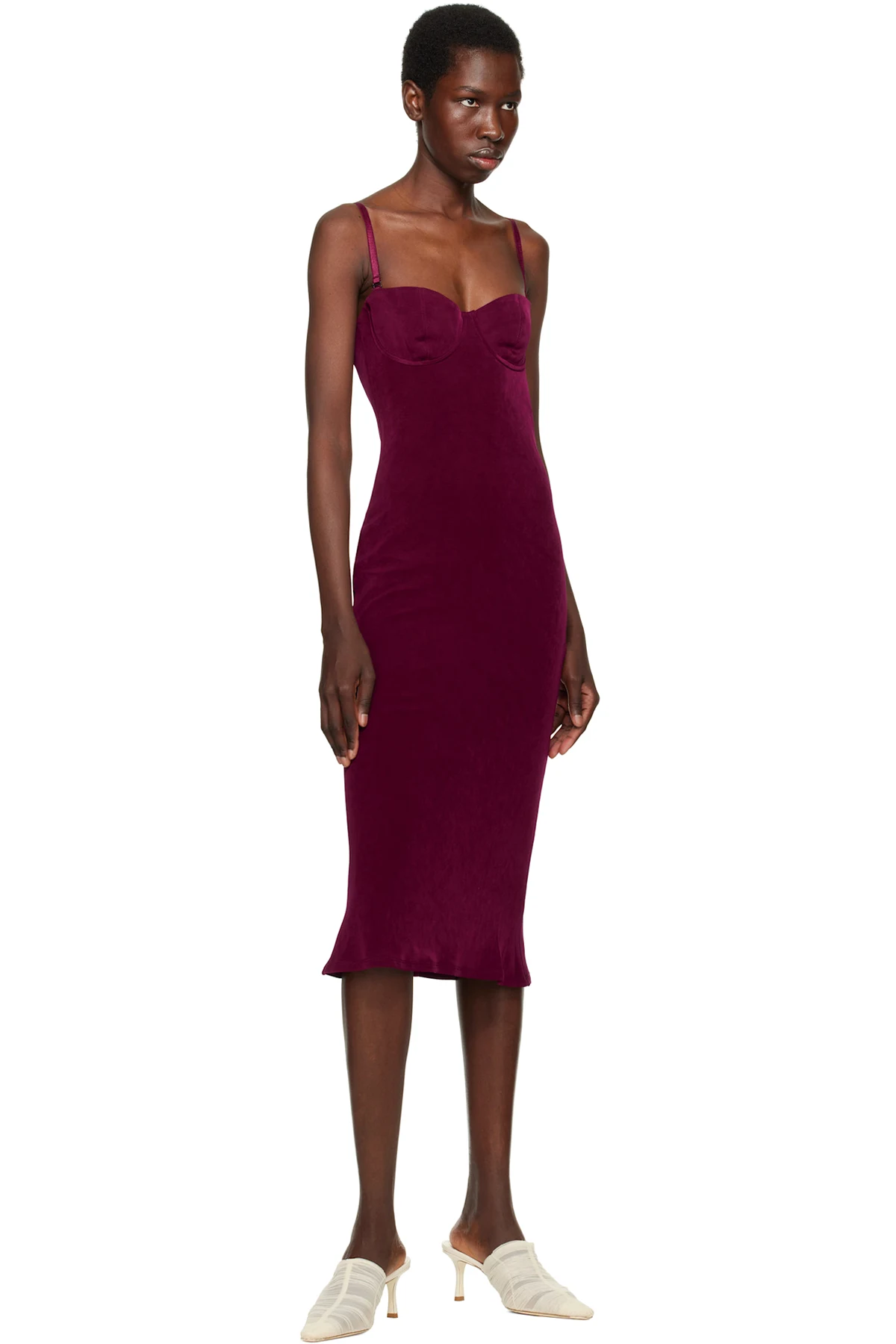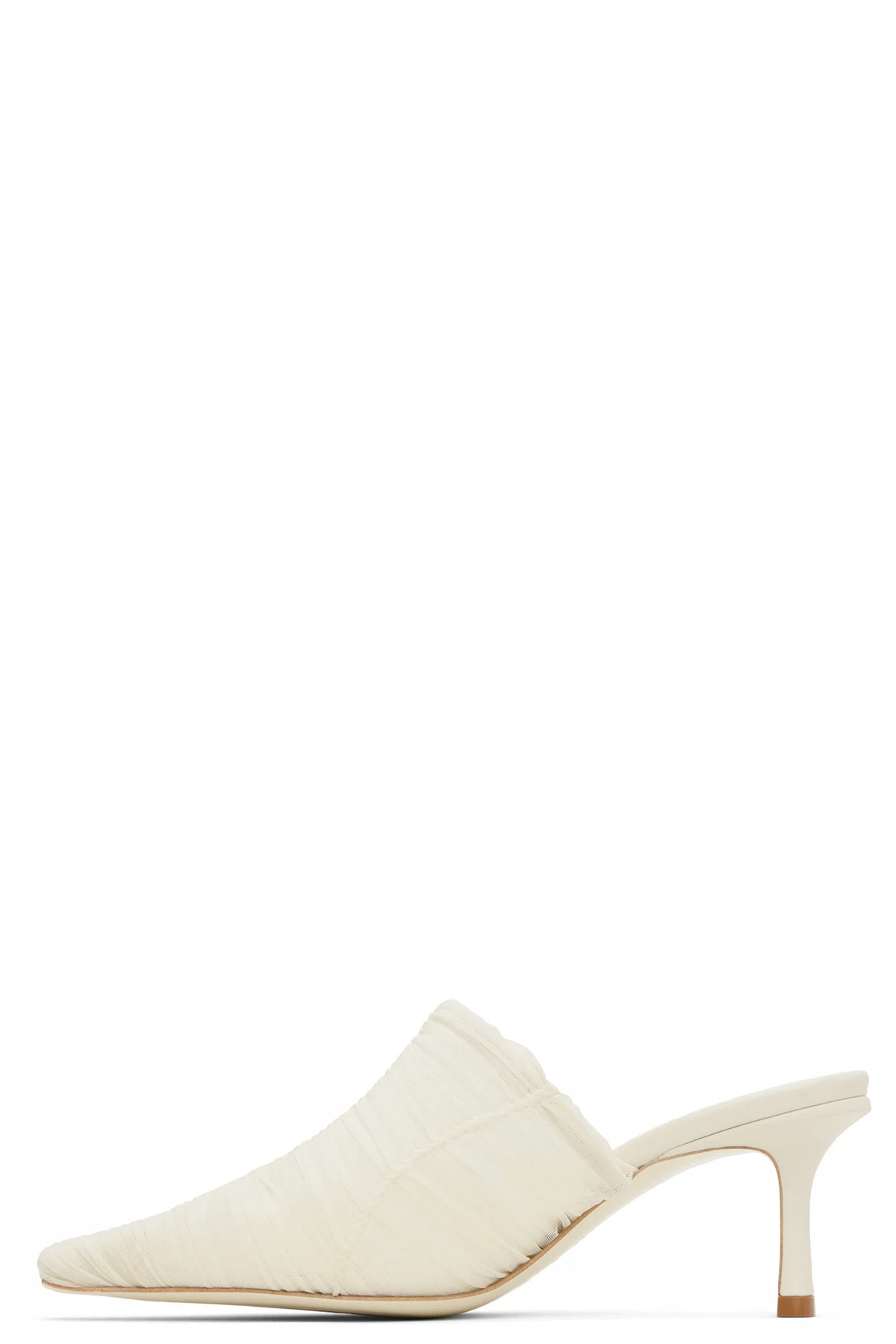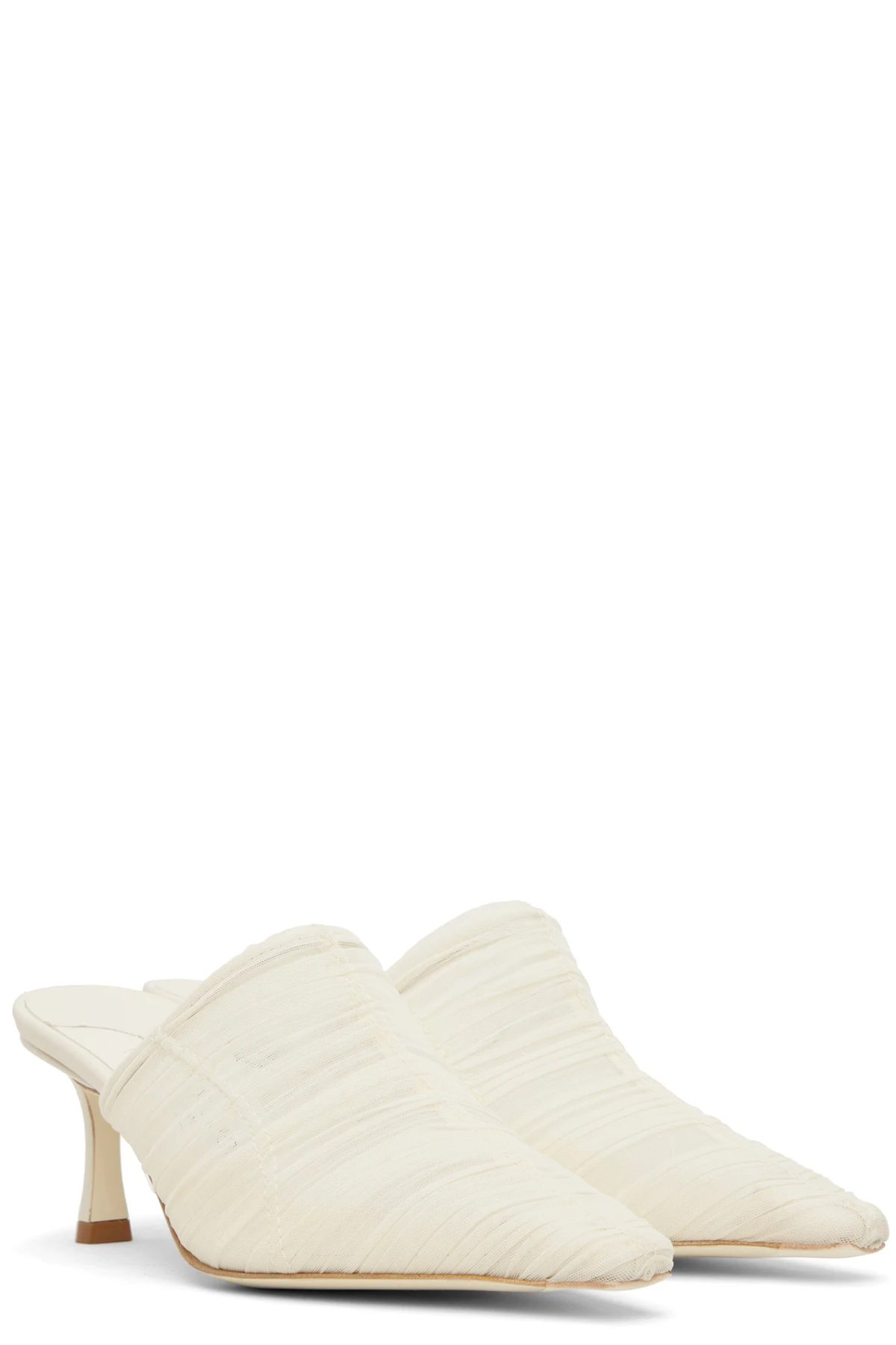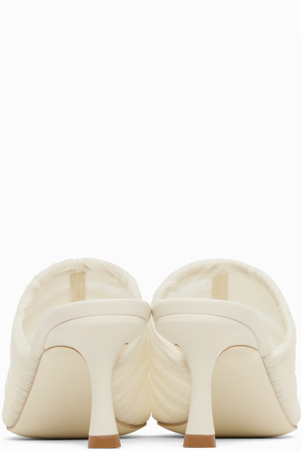 Semi-sheer ruched tulle mules in off-white.