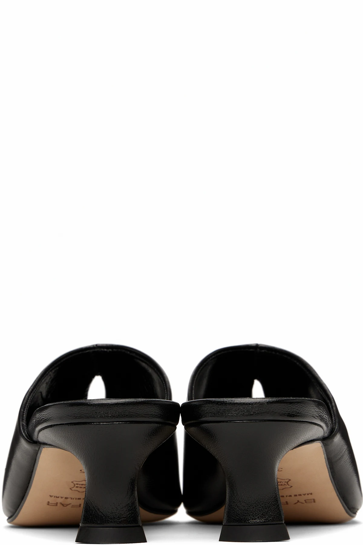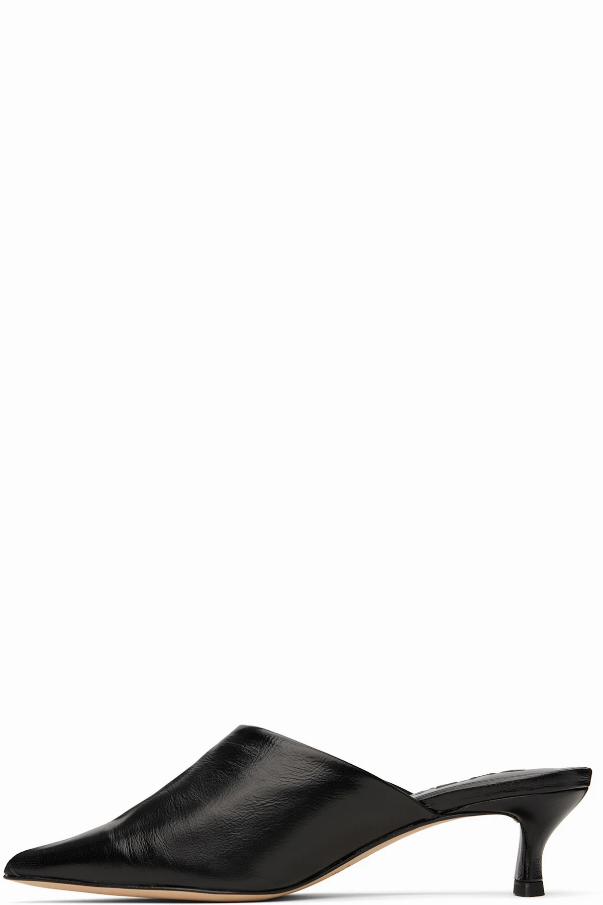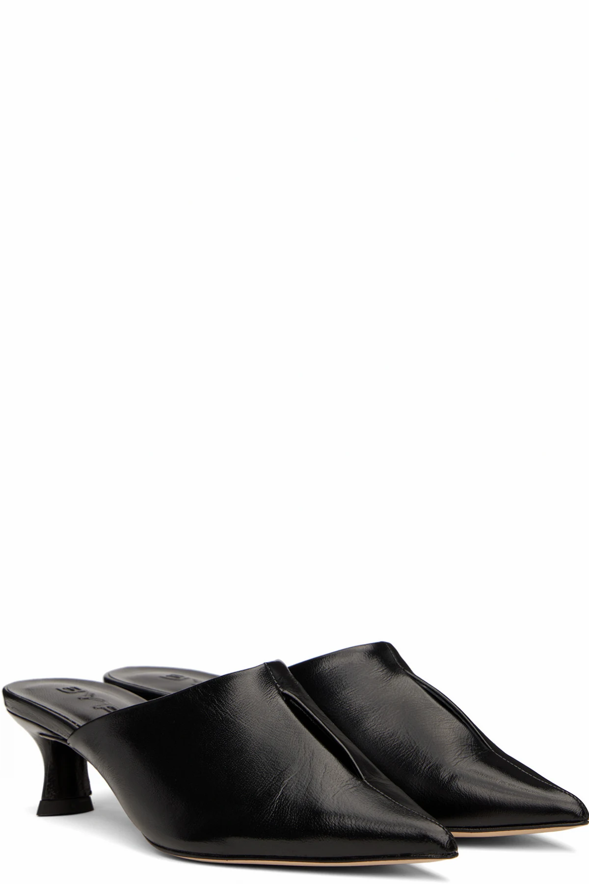 Polished nappa lambskin mules in black.