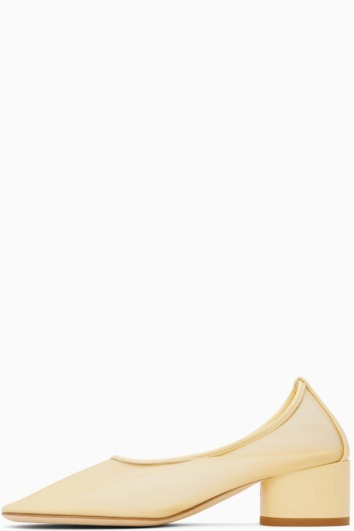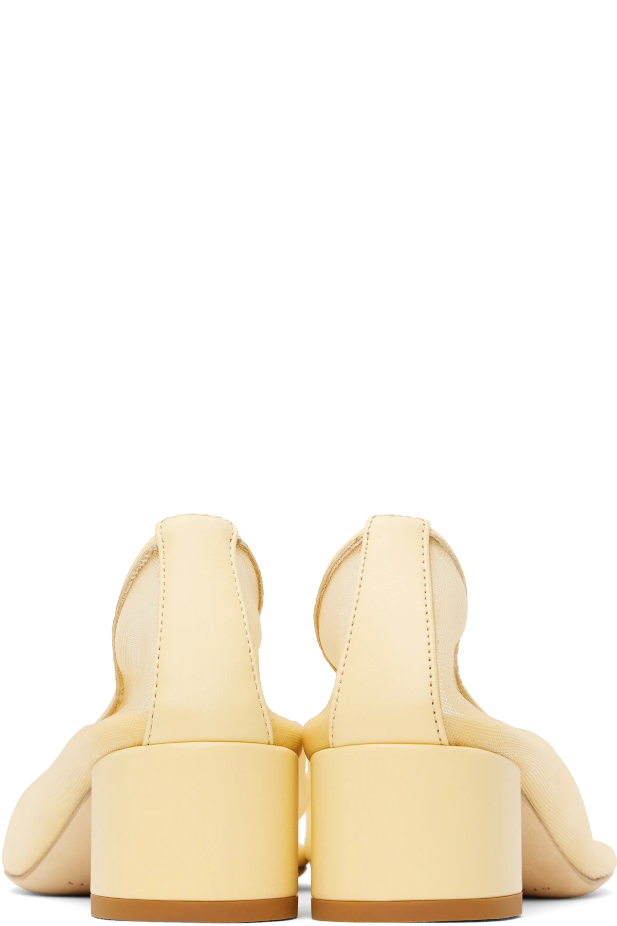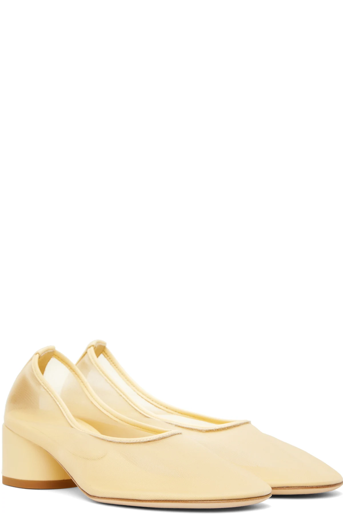 Handcrafted semi-sheer mesh heels in yellow.