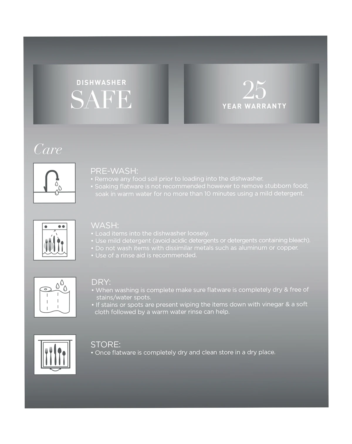 Dishwasher Safe - Never Needs Polishing, Remove Any Food Soil Prior To Loading Into The Dishwasher, Avoid Using Abrasive Cleaning Agents Such As Steel Wool And Citric Acid Detergent, Do Not Soak, Clean After Use