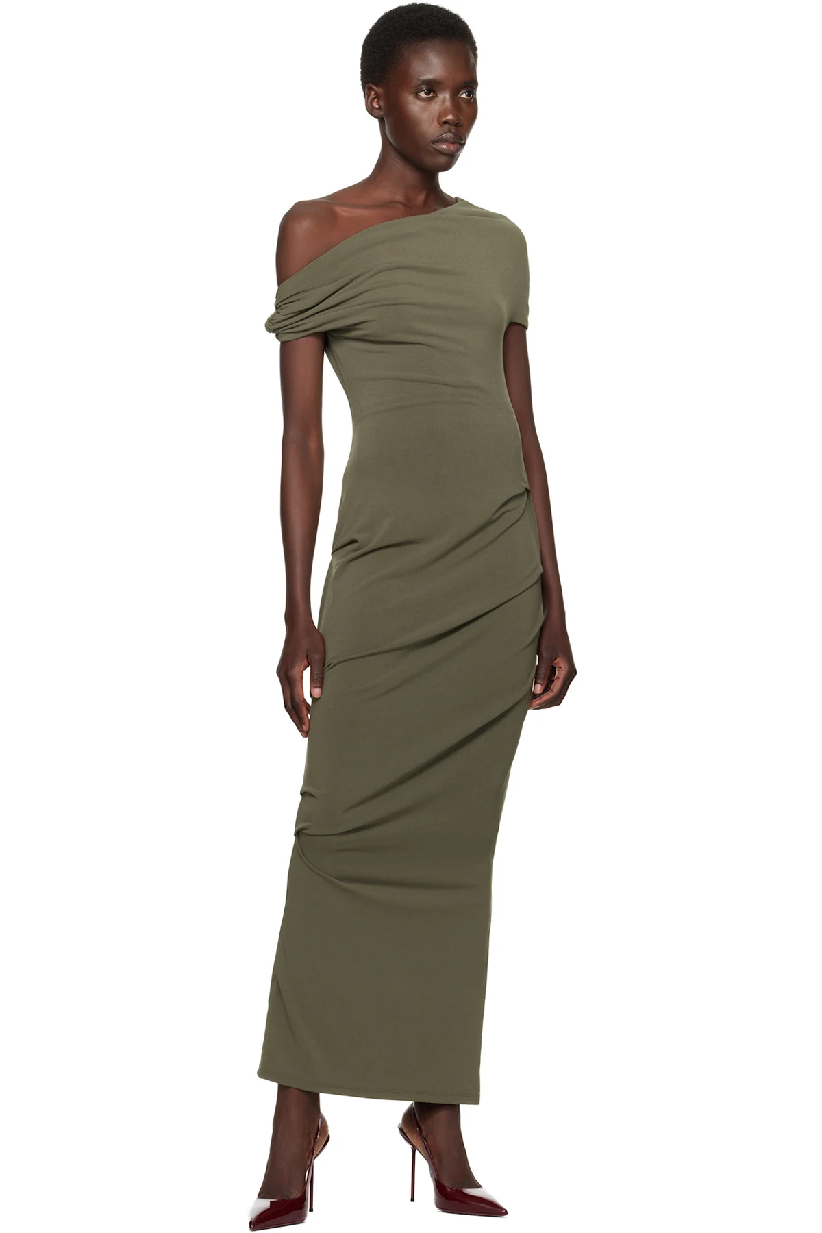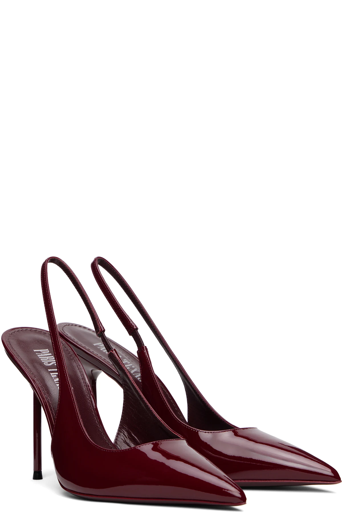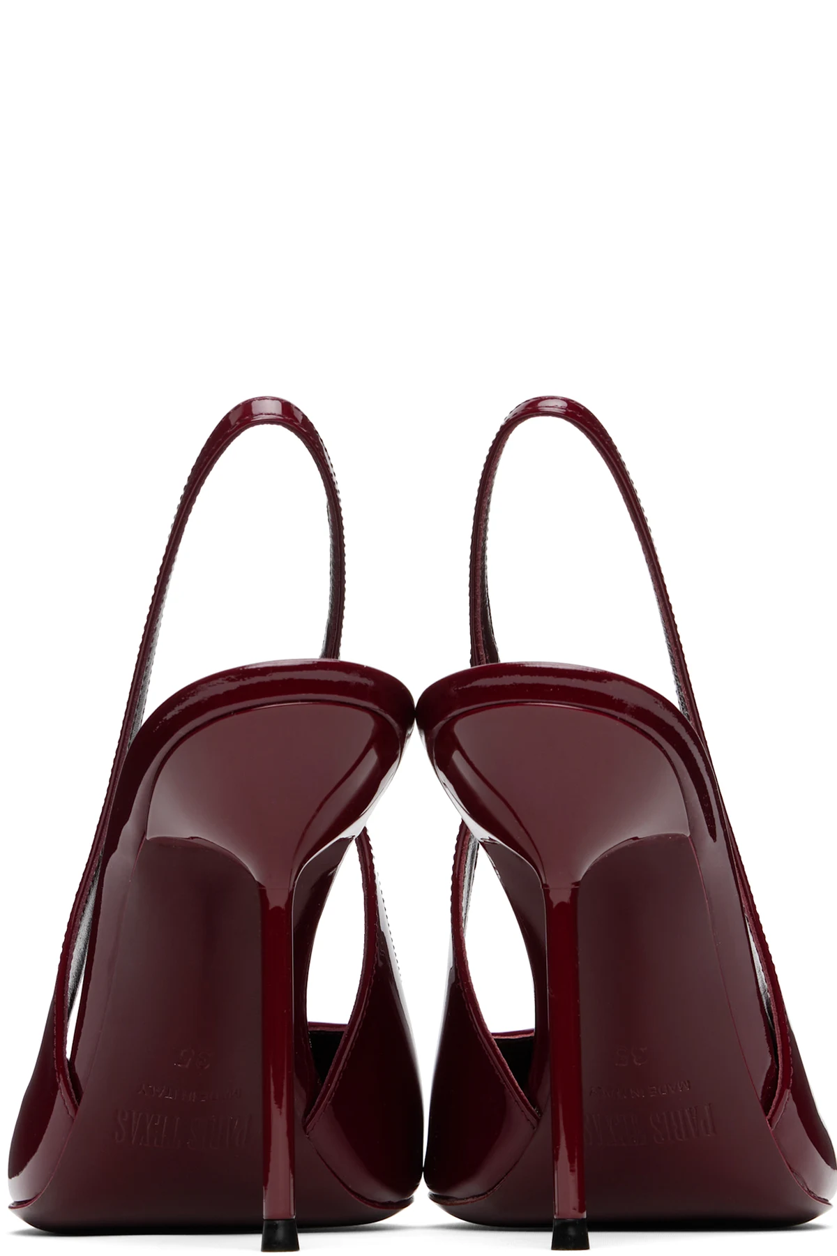 Patent leather heels in burgundy.