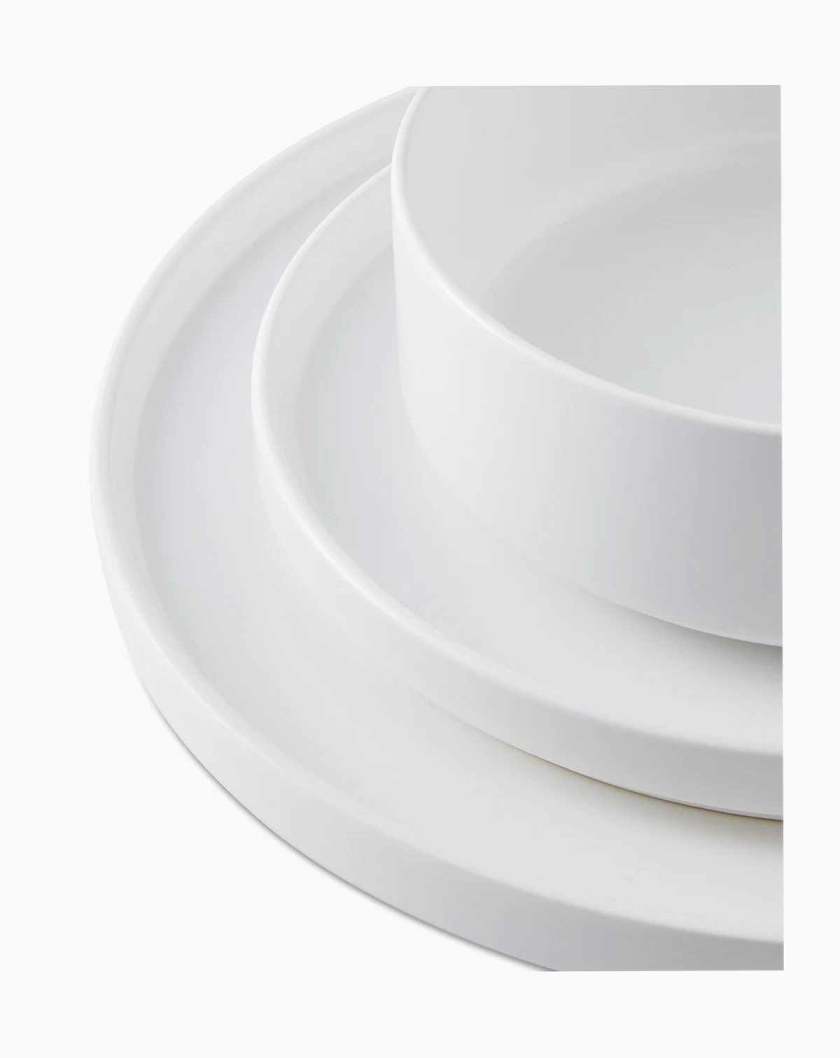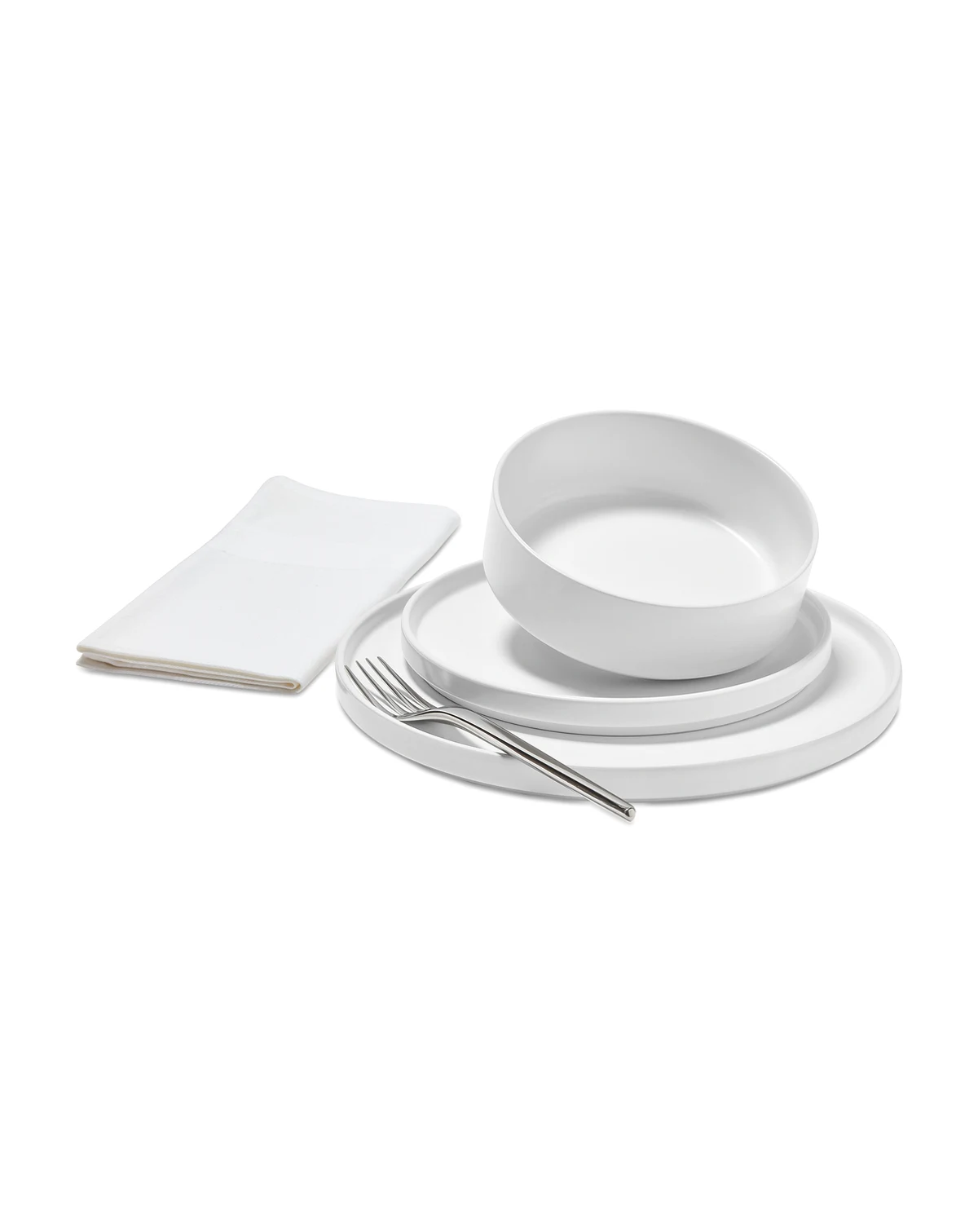 Sleek, rounded shapes, straight sides and a semi-matte finish define the modern style of this Aaden 12-piece dinnerware set from The Cellar. Pieces easily stack together for space-saving storage.