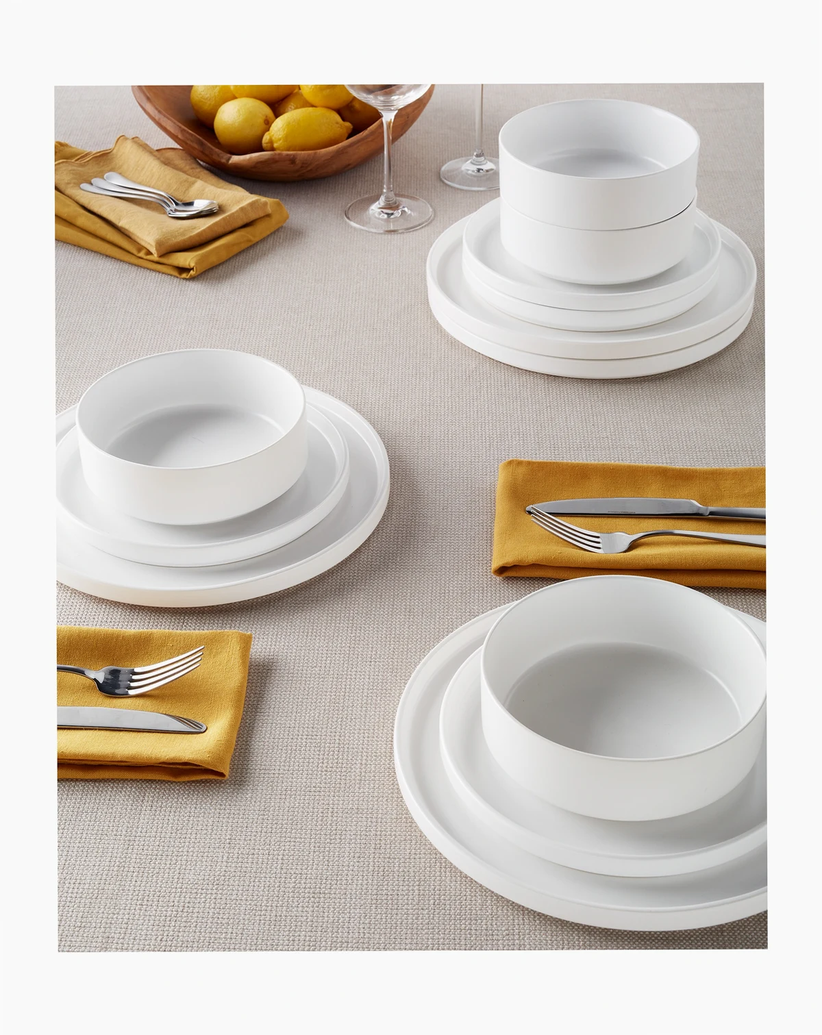 Flatware may leave more visible marks on matte dinnerware, removable with Bar Keepers Friend or other gentle powdered cleaner; Dishwasher and mocrowave safe