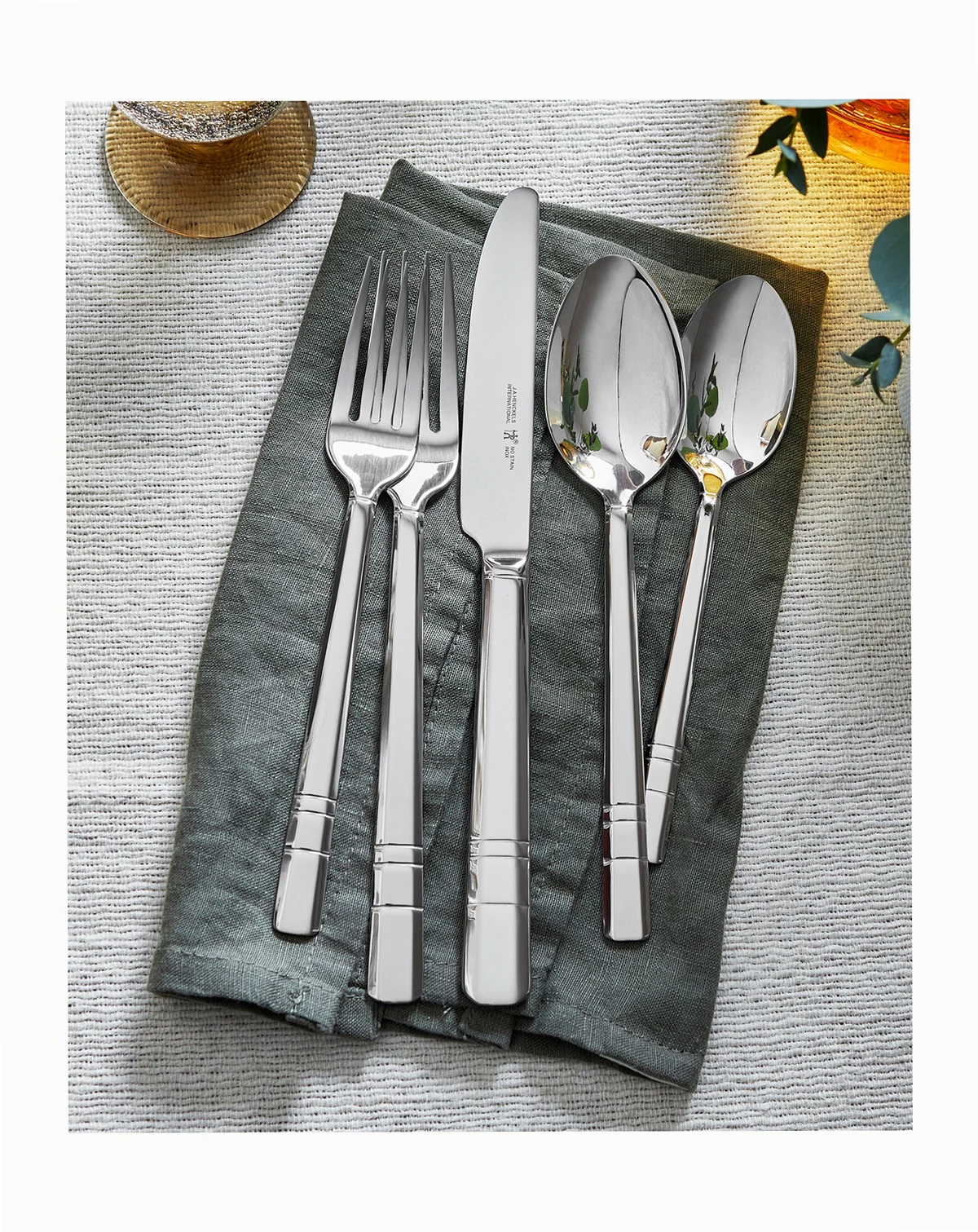 Refined by a trio of slender lines on the sleek handles, the J.A. Henckels International Madison Square flatware set promises quality stainless steel sophistication.