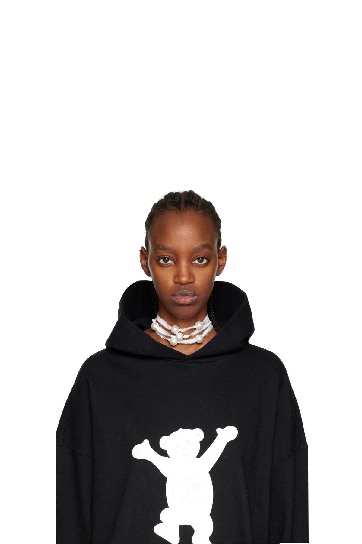 · Faux-pearl detailing at face