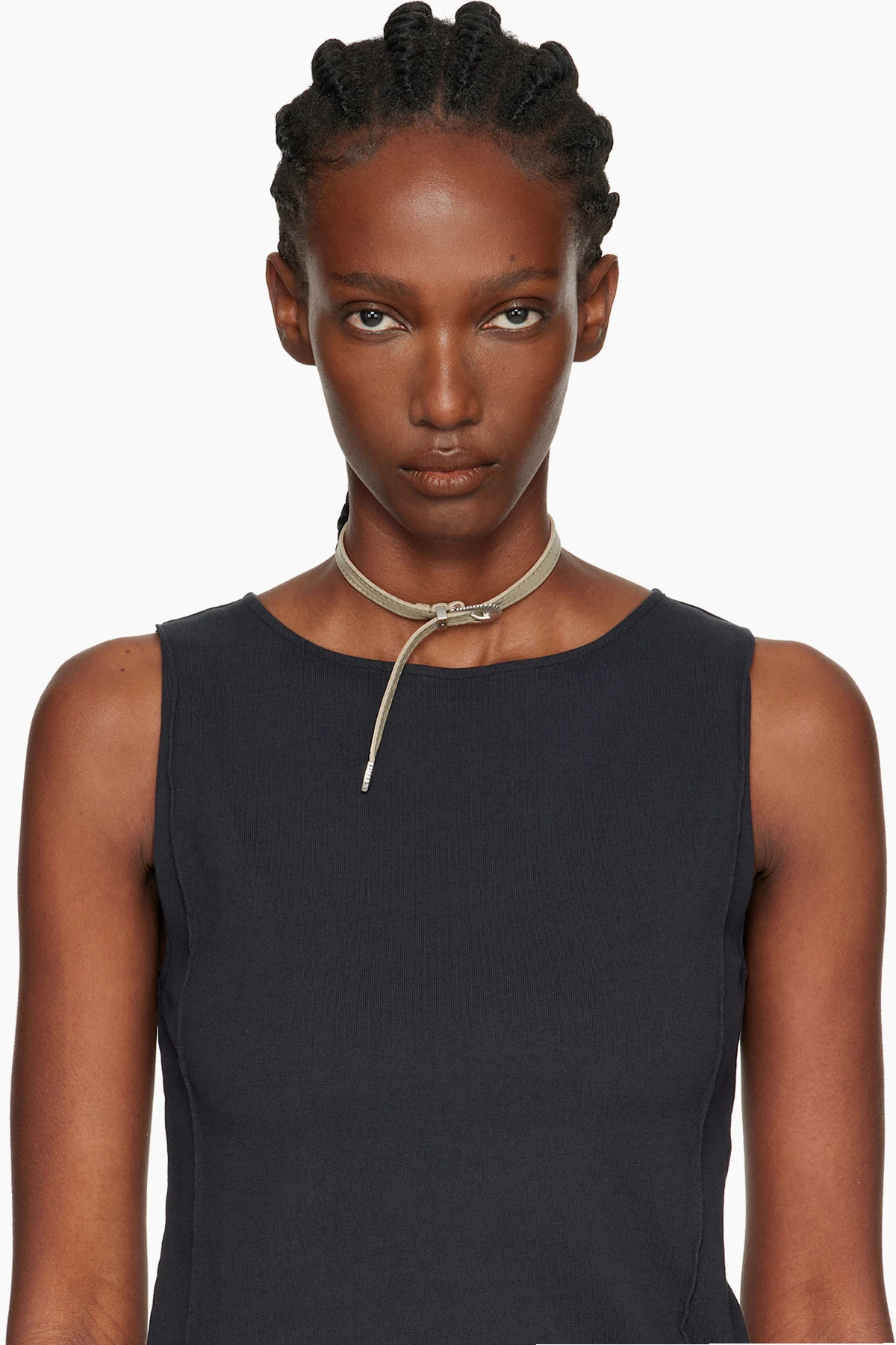 Wraparound grained calfskin necklace in khaki.