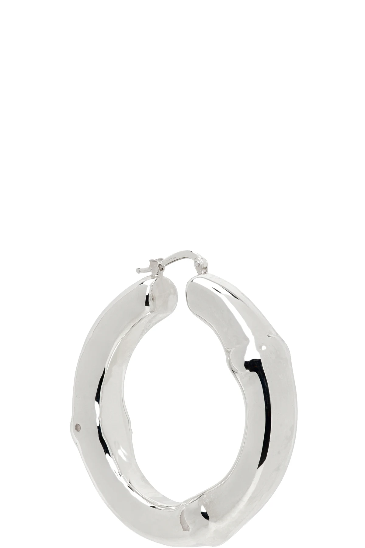 Handcrafted single hoop earring in silver-tone brass. Textured detailing throughout.