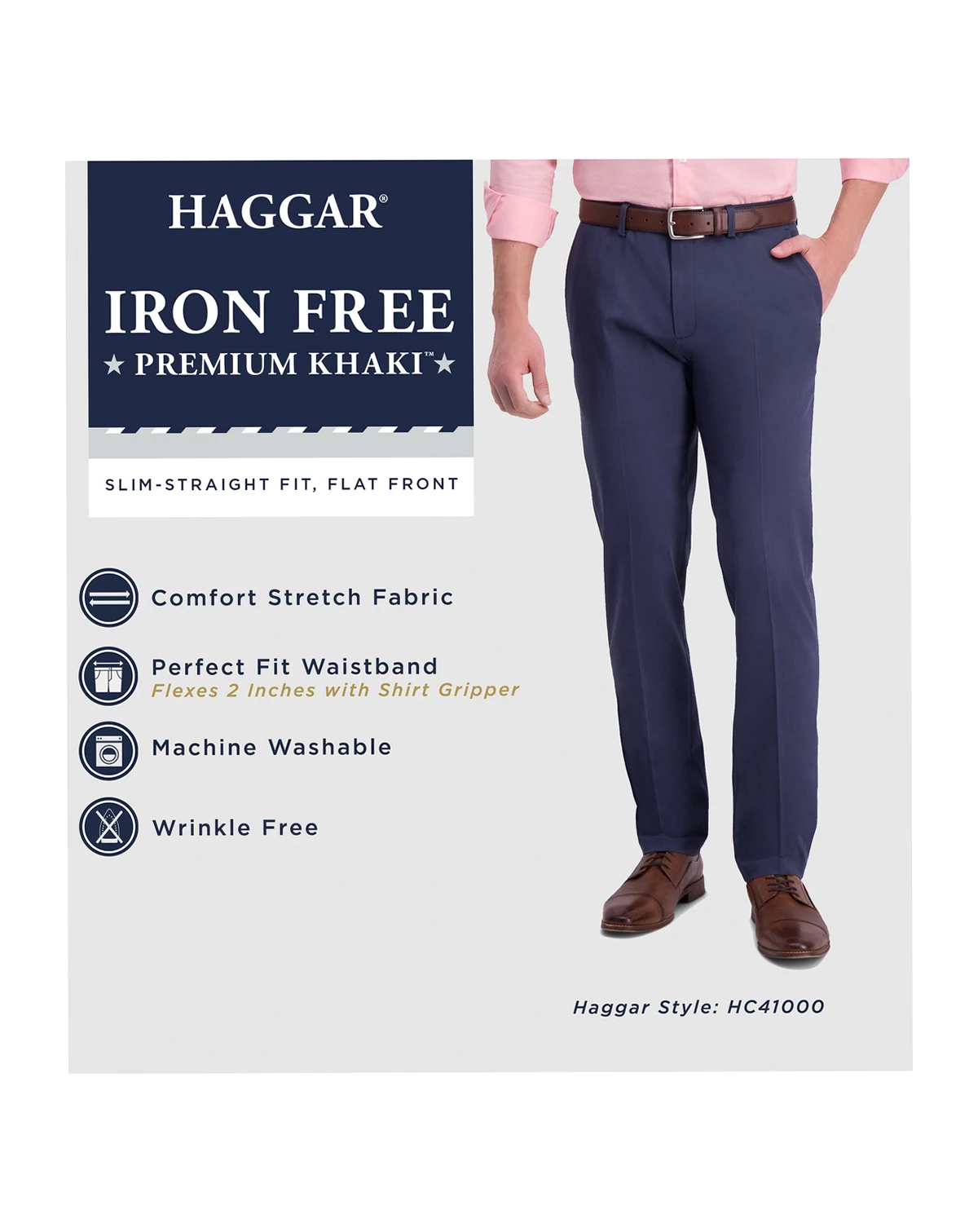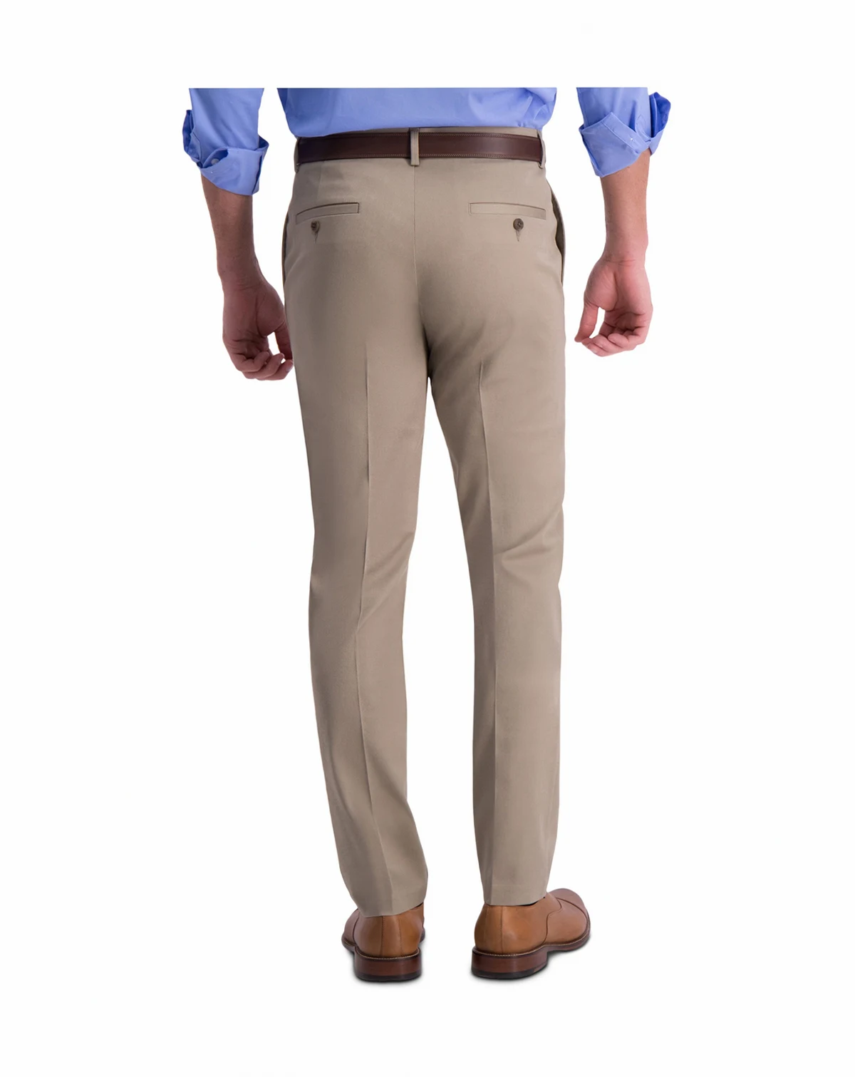 Slim fit pants sit slightly below the waist; slim fit through the hips and thighs with a straight leg opening; Perfect fit waistband flexes 2"