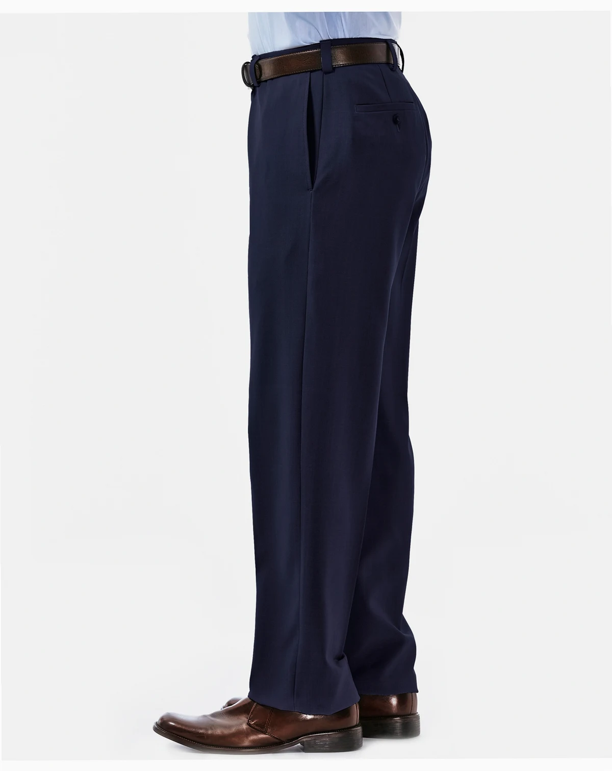You won't believe the hand on these pants! Crafted from super smooth and lightweight fabric, these sophisticated flat front pants help your workweek wardrobe. Accented with subtle heathered details and an unfinished hem, there's absolutely nothing you won't love about these Haggar dress pants.