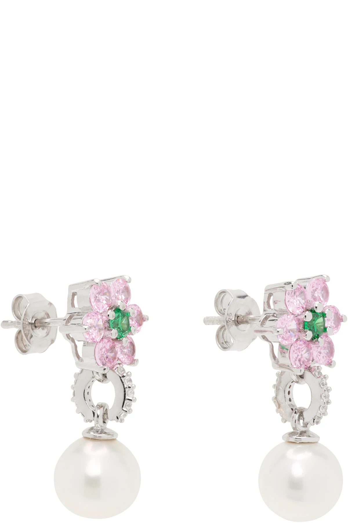 Pair of handcrafted drop earrings in 18k white gold vermeil.