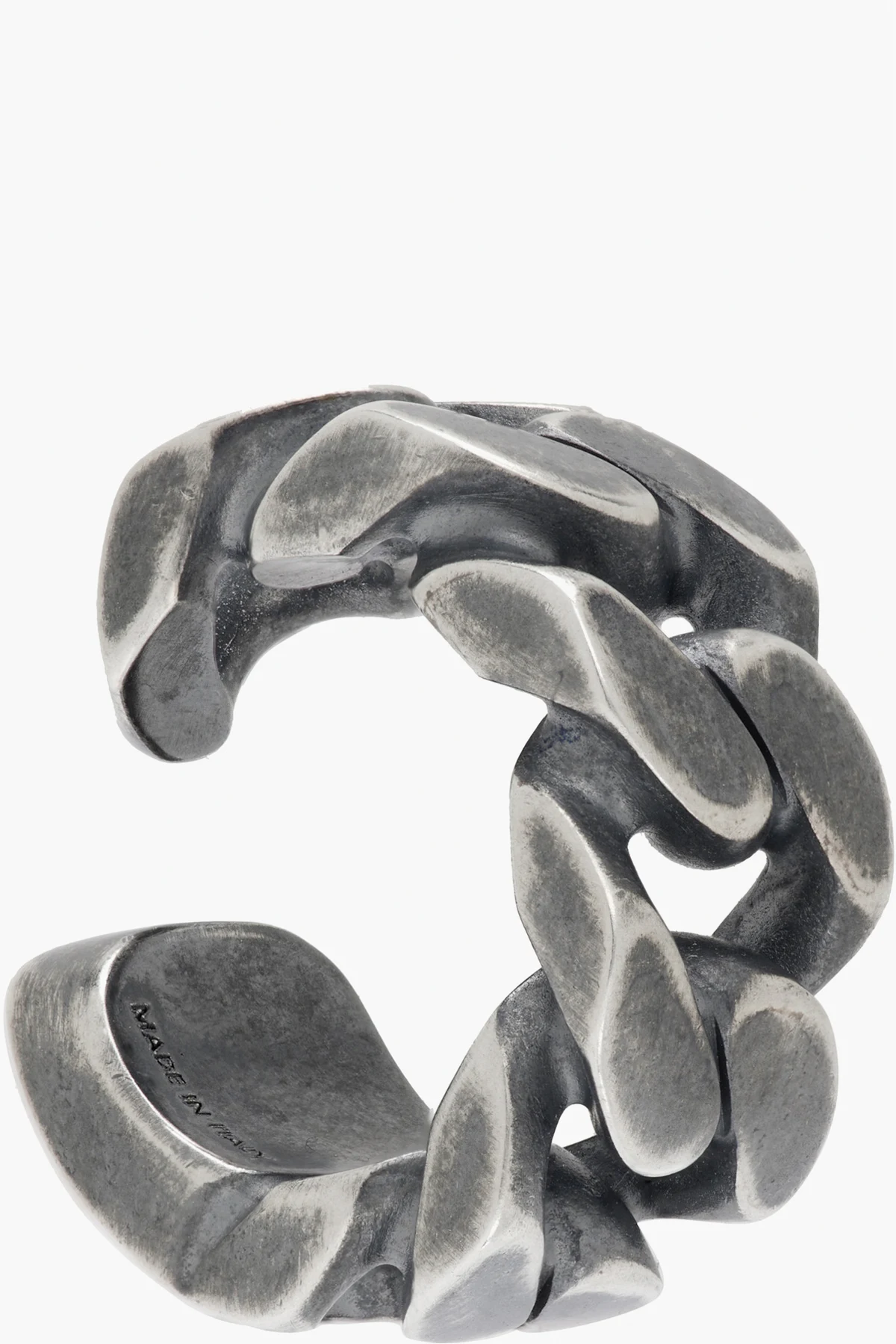 Single fixed curb chain ear cuff in antiqued silver-tone brass.