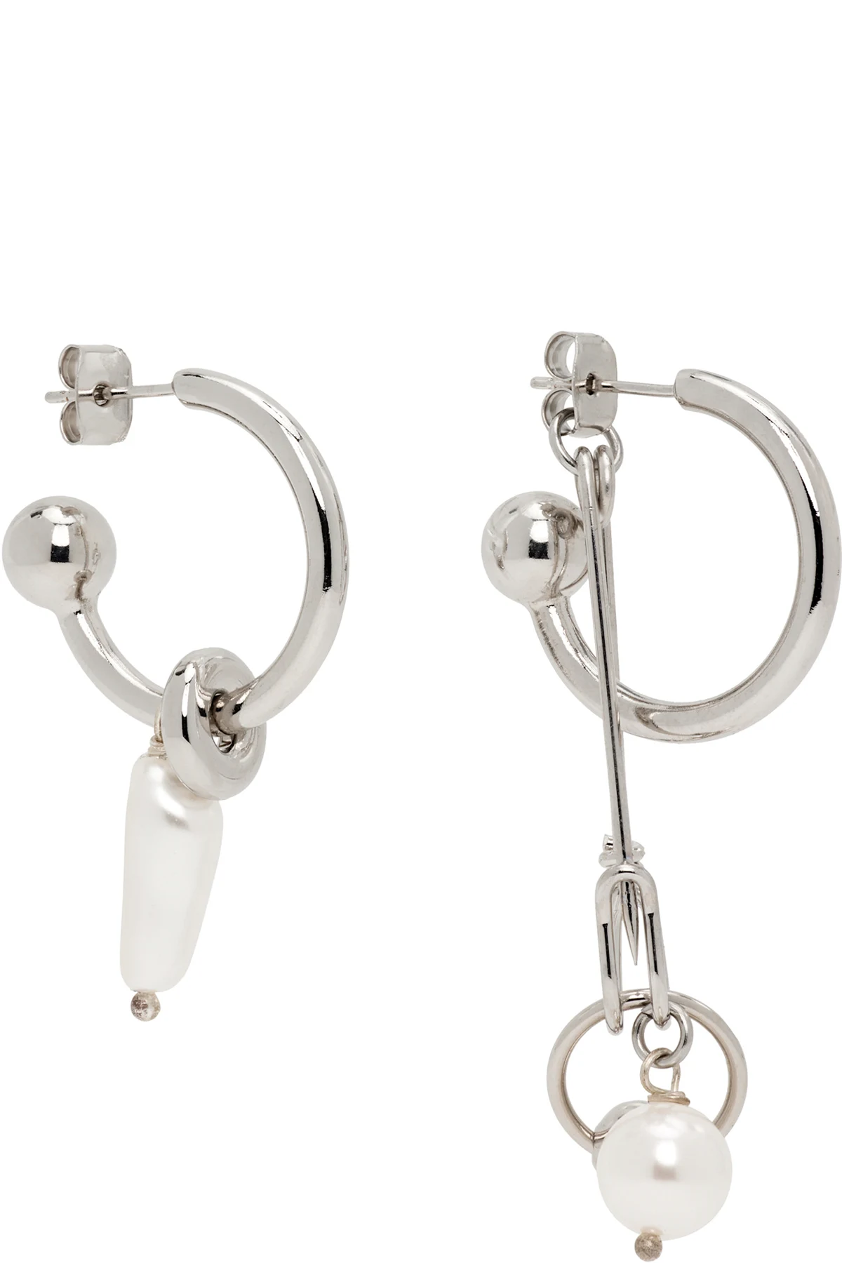 Pair of handcrafted and mismatched drop earrings in palladium-plated brass.