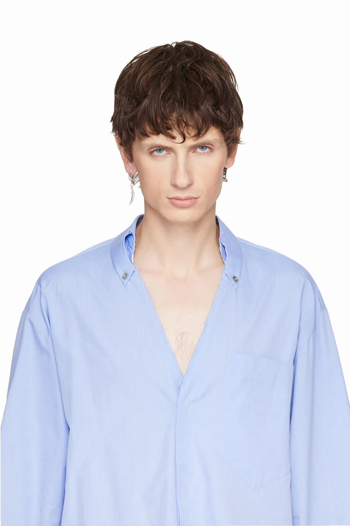 Single open hoop earring in sterling silver.
